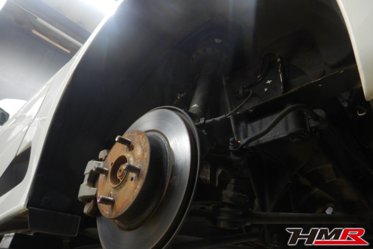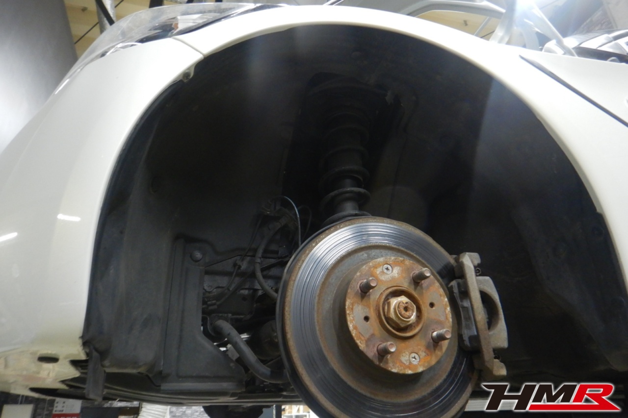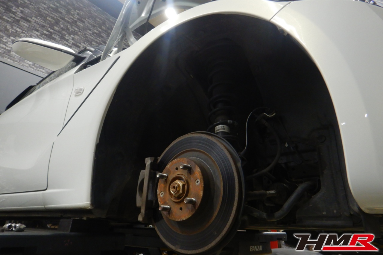 ハブベアリング・ボールジョイント、アーム・リンク類のガタ、ブッシュ・ブーツ類の劣化、エンジン・ミッション・デフからのオイル漏れと各マウント類、タイヤ溝の残量、空気圧の点検しました。特に問題ありませんでした。