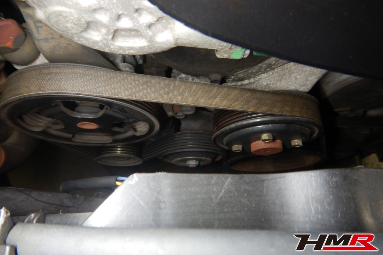 バッテリー、インテークホース、エアクリーナー、補機ベルト、プラグ、ブレーキ・クラッチマスターシリンダー、各部ゴム類の劣化、パッキン類・シール類からのオイル滲み・漏れ、ラジエターの劣化、冷却水漏れ、その他異音などをチェックしました。ベルトに摩耗、プラグに摩耗、ヘッドカバーパッキンから漏れ、バッテリーが弱っているなどしていましたのでそれぞれ交換しました。