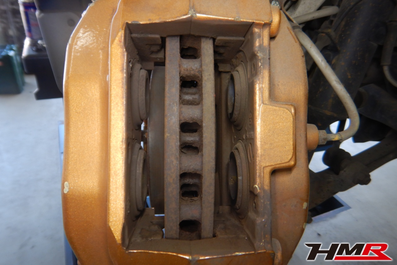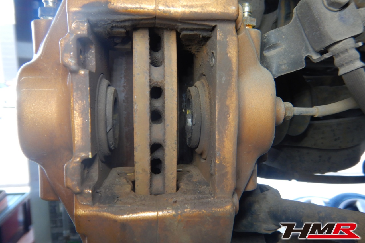 ブレーキキャリパーシール・キャリパーピストン、パッドの残量、ブレーキホースの劣化、ブレーキディスクローターの摩耗をチェックしました。左側リアブレーキピンを取り付けました。