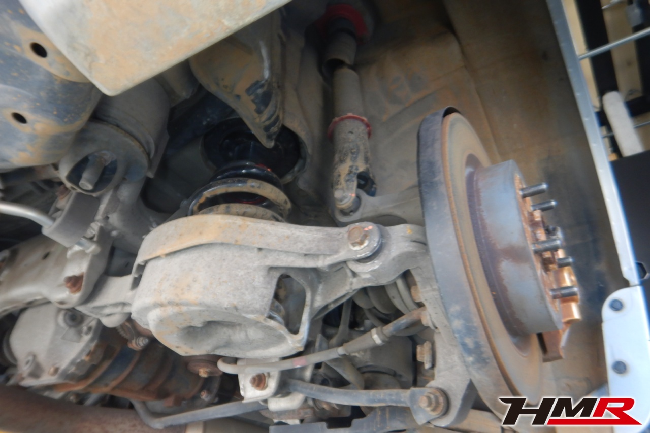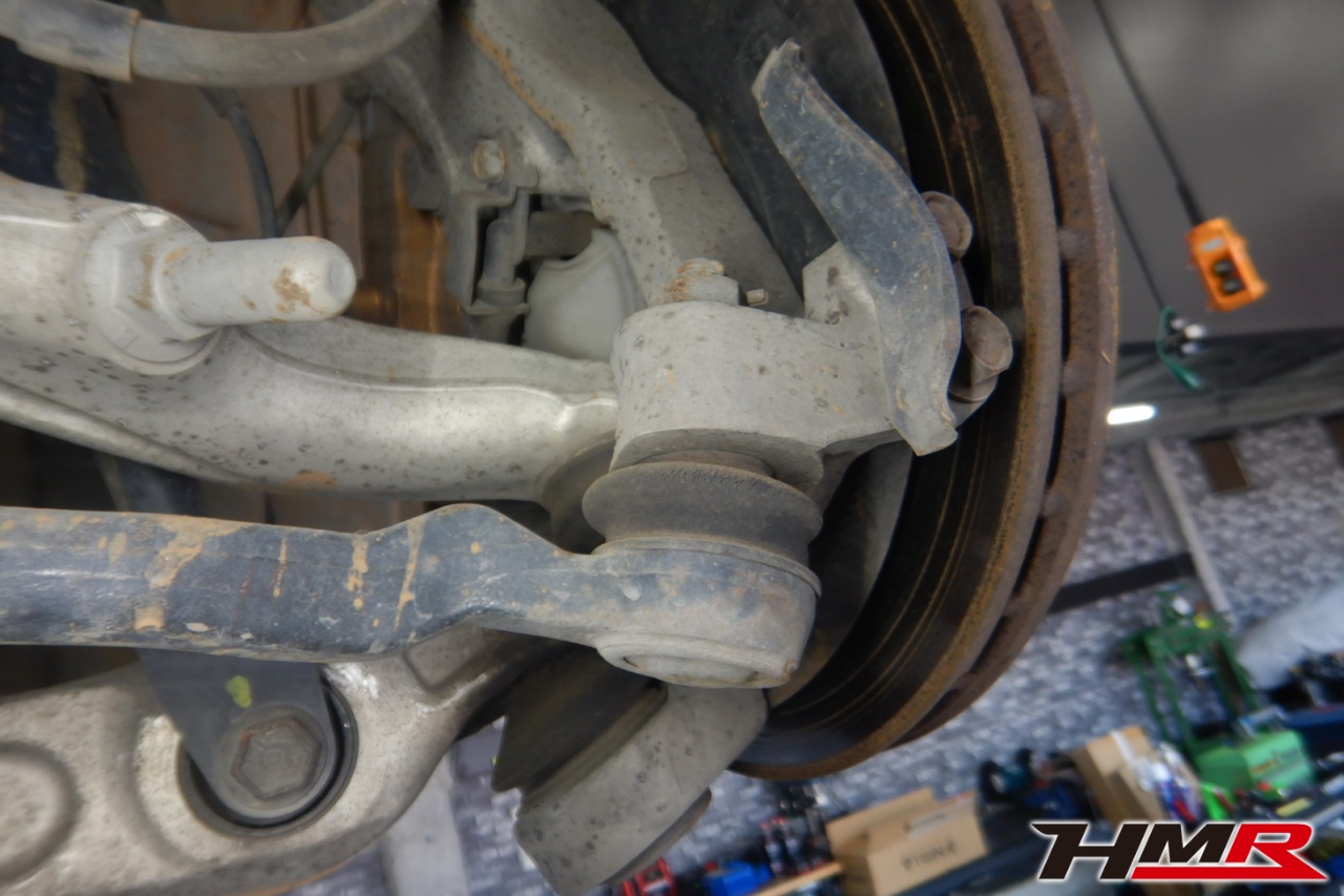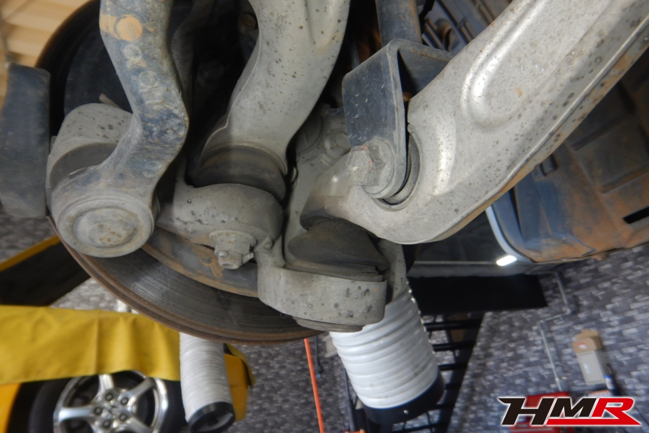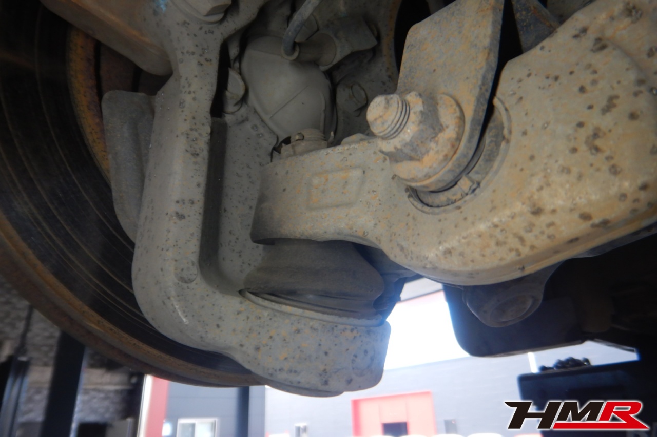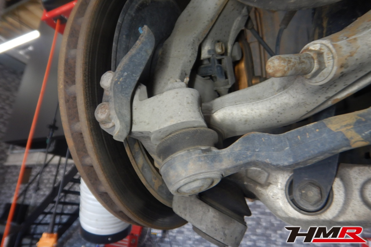 ハブベアリング・ボールジョイント、アーム・リンク類のガタ、ブッシュ・ブーツ類の劣化、エンジン・ミッション・デフからのオイル漏れと各マウント類、タイヤ溝の残量、空気圧の点検しました。左右タイロッドエンドブーツにヒビ、左右フロントロアアームブーツにヒビが見られましたが、早急に交換する必要はなかったため、今後乗っていく中でタイミングを見て交換することをおすすめします。