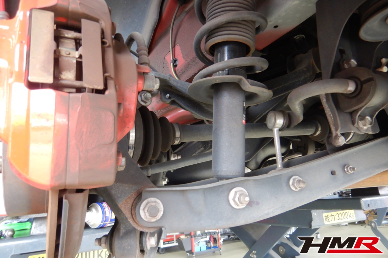 ハブベアリング・ボールジョイント、アーム・リンク類のガタ、ブッシュ・ブーツ類の劣化、エンジン・ミッション・デフからのオイル漏れと各マウント類、タイヤ溝の残量、空気圧の点検しました。特に問題ありませんでした。タイヤは2022年製ミシュランパイロットスポーツでサイズは前後215/45R17になります。タイヤの残量はおおよそフロント5.5mm・リア5.8mmでした。