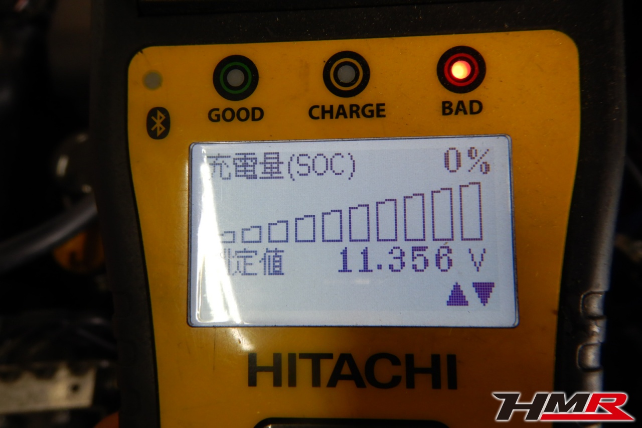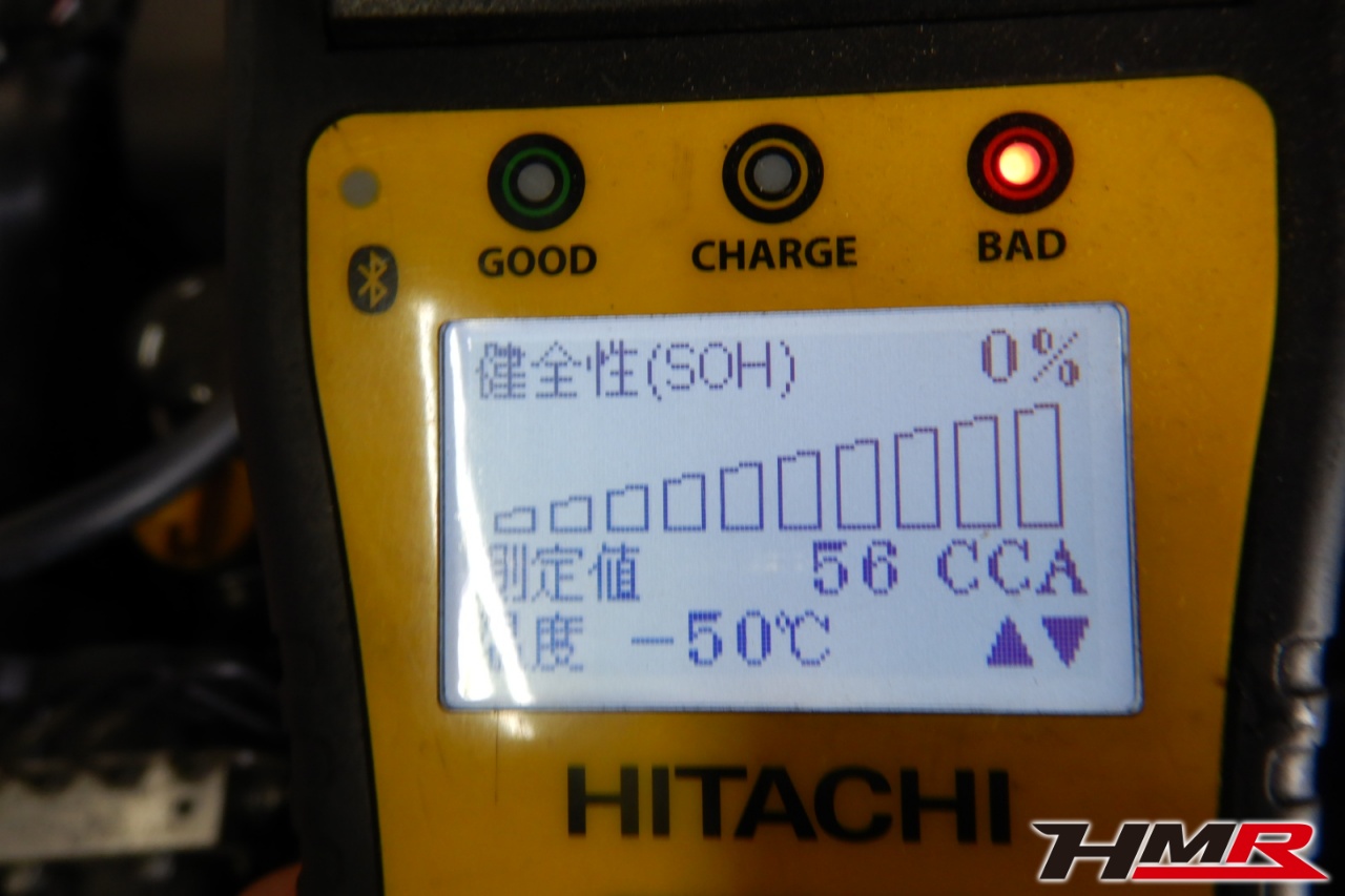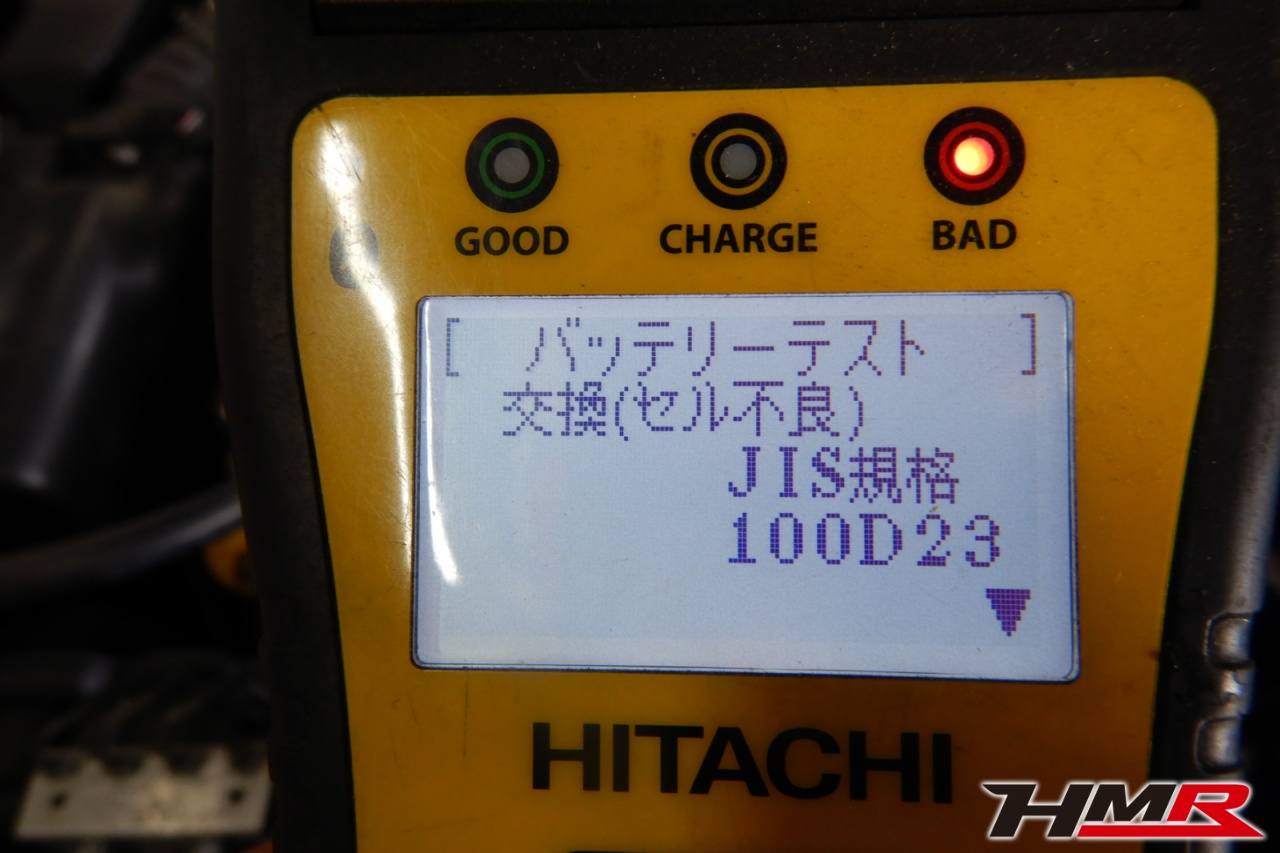 バッテリー、インテークホース、エアクリーナー、補機ベルト、プラグ、ブレーキ・クラッチマスターシリンダー、各部ゴム類の劣化、パッキン類・シール類からのオイル滲み・漏れ、ラジエターの劣化、冷却水漏れ、その他異音などをチェックしました。バッテリーが弱っていましたので交換しました。