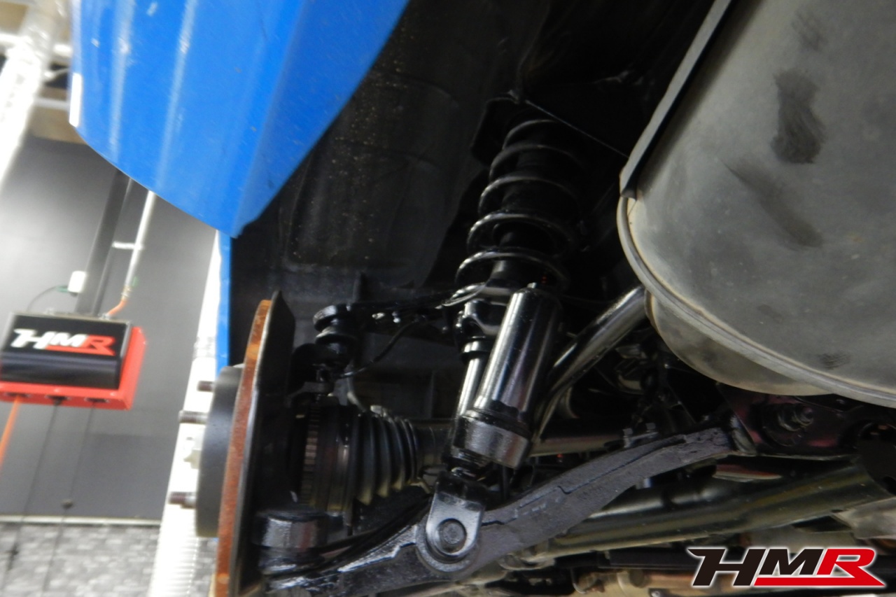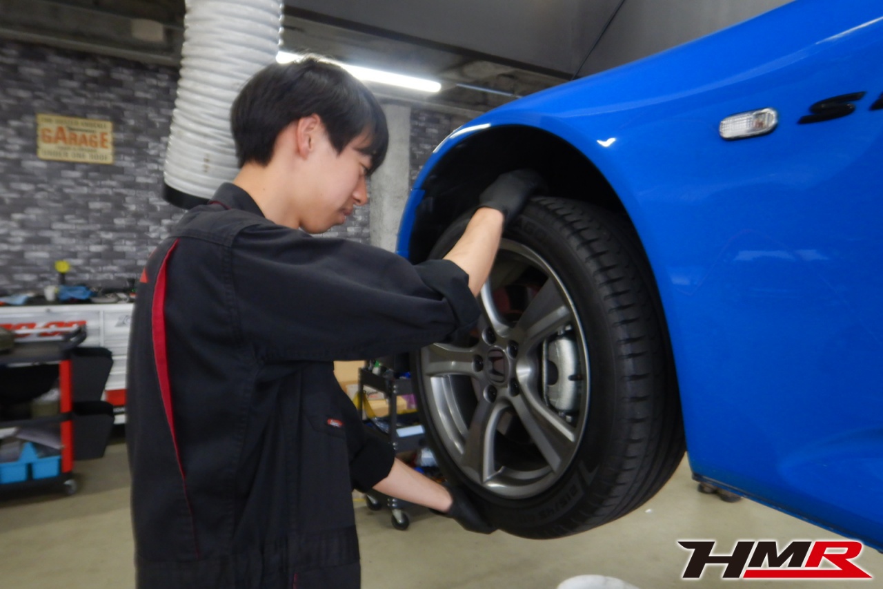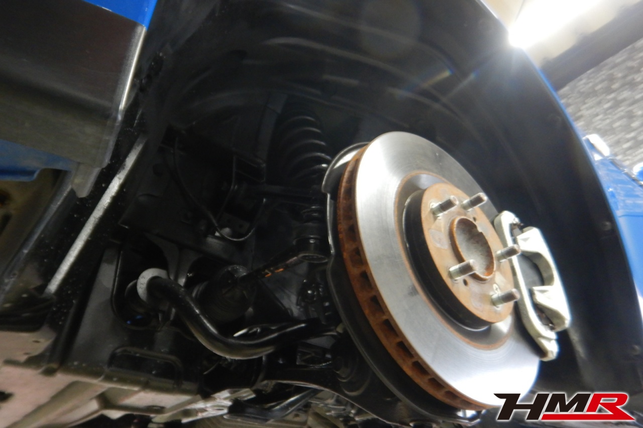 ハブベアリング・ボールジョイント、アーム・リンク類のガタ、ブッシュ・ブーツ類の劣化、エンジン・ミッション・デフからのオイル漏れと各マウント類、タイヤ溝の残量、空気圧の点検を行いました。特に問題ありませんでした。