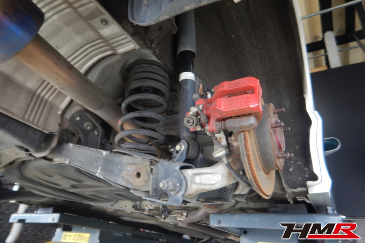 ハブベアリング・ボールジョイント、アーム・リンク類のガタ、ブッシュ・ブーツは類の劣化、エンジン・ミッション・デフからのオイル漏れと各マウント類、タイヤ溝の残量、空気圧の点検しました。左右フロントロアアームブーツに大きなヒビがありましたので交換しました。また左右タイロッドエンドブーツと左右フロントロアアームブッシュに中小サイズのヒビが見られましたが、早急に交換する必要は無かったため今後乗っていく中でタイミングを見て交換することおおすすめします。