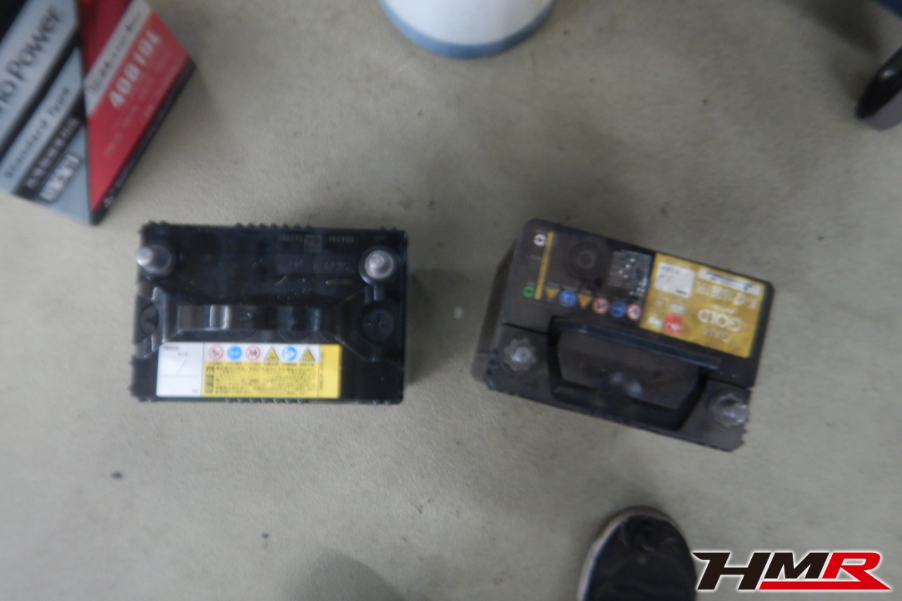 バッテリー、インテークホース、エアクリーナー、補機ベルト、プラグ、ブレーキ・クラッチマスターシリンダー、各部ゴム類の劣化、パッキン類・シール類からのオイル滲み・漏れ、ラジエターの劣化、冷却水漏れ、その他異音などをチェックしました。バッテリーが弱っていましたので交換しました。