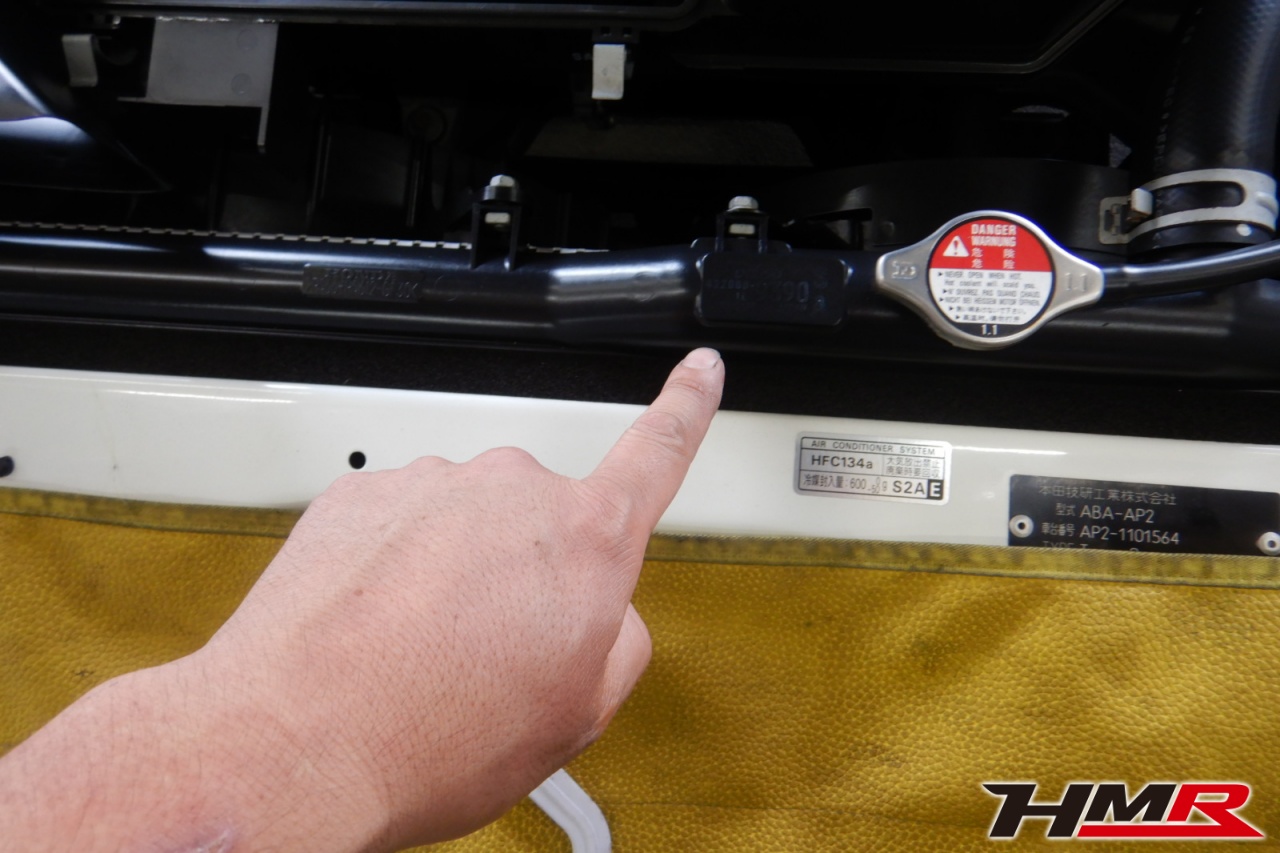 HMR(エイチエムアール)の秋山です。今回はノーマルコンディション 赤内装 ETC装備のS2000(AP2)タイプSの納車前点検整備を行いました。担当メカニックは藤来です。
