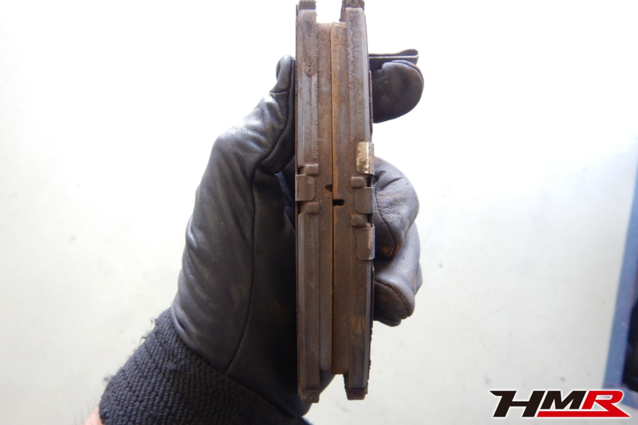 ブレーキキャリパーシール・キャリパーピストン、パッドの残量、ブレーキホースの劣化、ブレーキディスクローターの摩耗をチェックしました。特に問題ありませんでした。パッドの残量はおおよそフロント4.8mm・リア4.0mmでした。