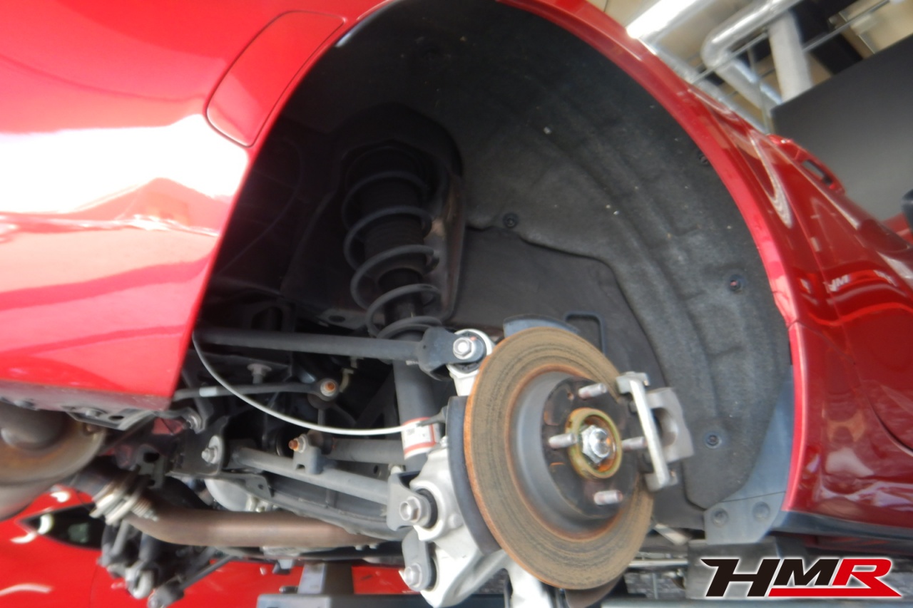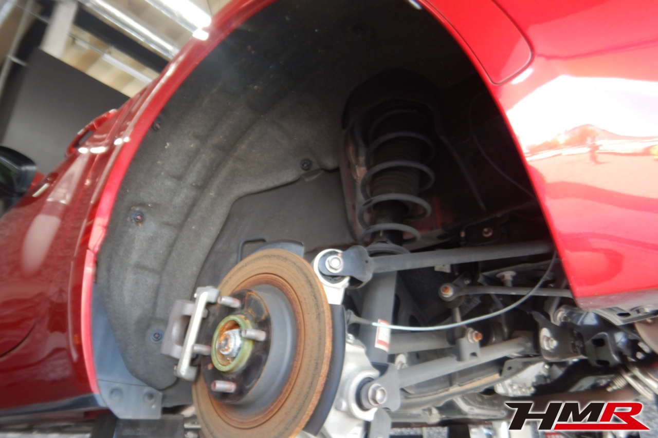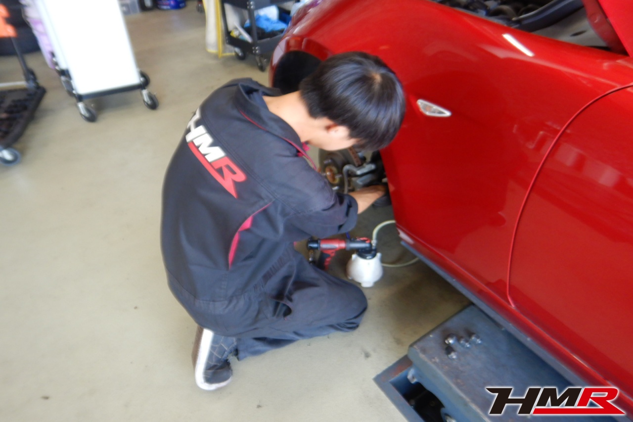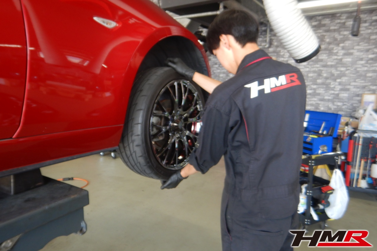 HMR(エイチエムアール)の秋山です。今回は Weds17インチ オートエグゼマフラー装備のロードスター(ND5RC)の納車前点検整備を行いました。担当メカニックは手代木です。