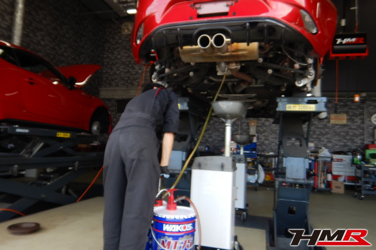 エンジンオイル、オイルフィルター、ミッションオイル、リアデフオイル、ブレーキフルードを交換しました。エンジンオイルはWAKO’SプロステージS 0W-30、ミッションオイルはWAKO’Sギアオイル MT-75 リアデフオイルはWAKO’S ギアオイルMG-90に交換しています。
