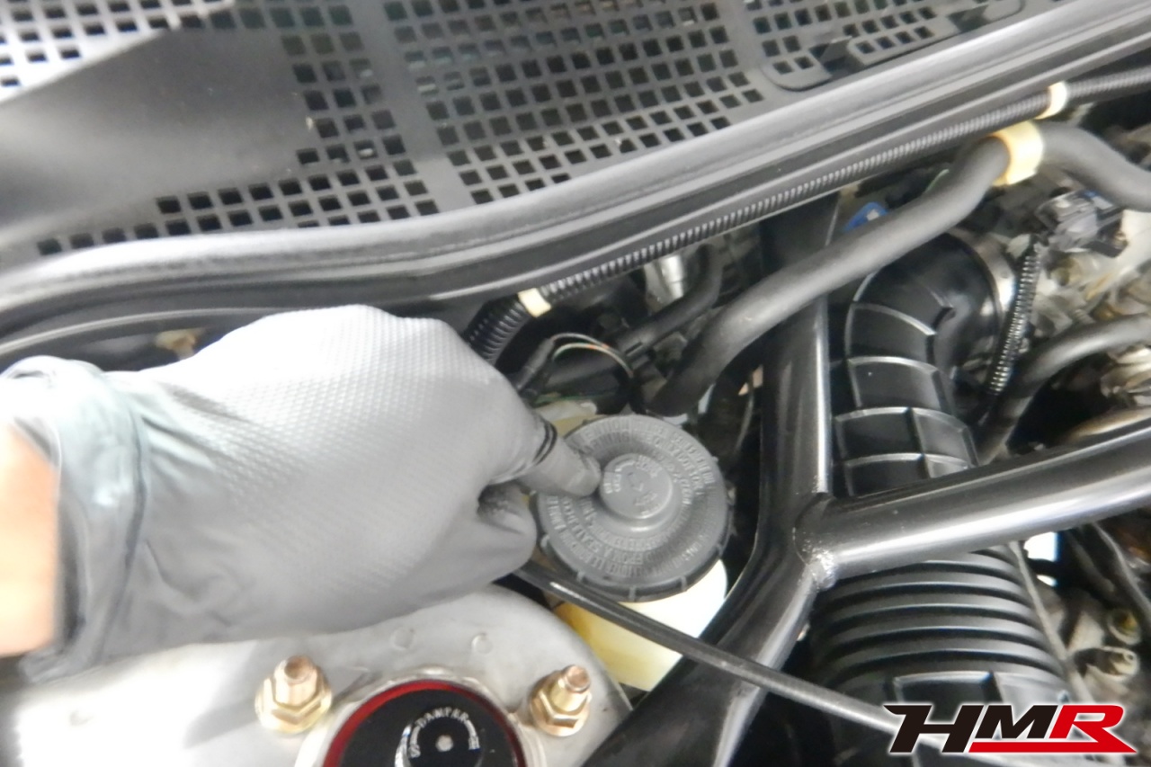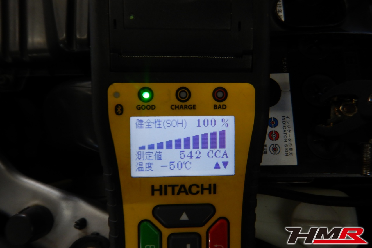 バッテリー、インテークホース、エアクリーナー、補機ベルト、プラグ、ブレーキ・クラッチマスターシリンダー、各部ゴム類の劣化、パッキン類・シール類からのオイル滲み・漏れ、ラジエターの劣化、冷却水漏れ、その他異音などをチェックしました。ウォッシャータンクキャップが割れていましたので交換しました。