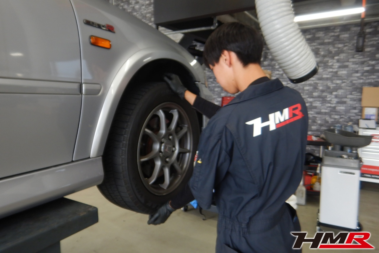 HMR(エイチエムアール)の秋山です。今回は5MT LARGUS車高調 社外ナビ装備のトルネオユーロR(CL1)の納車前点検整備を行いました。担当メカニックは手代木です。