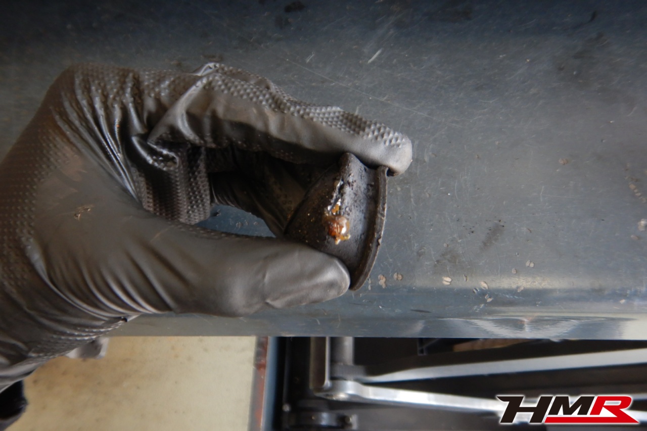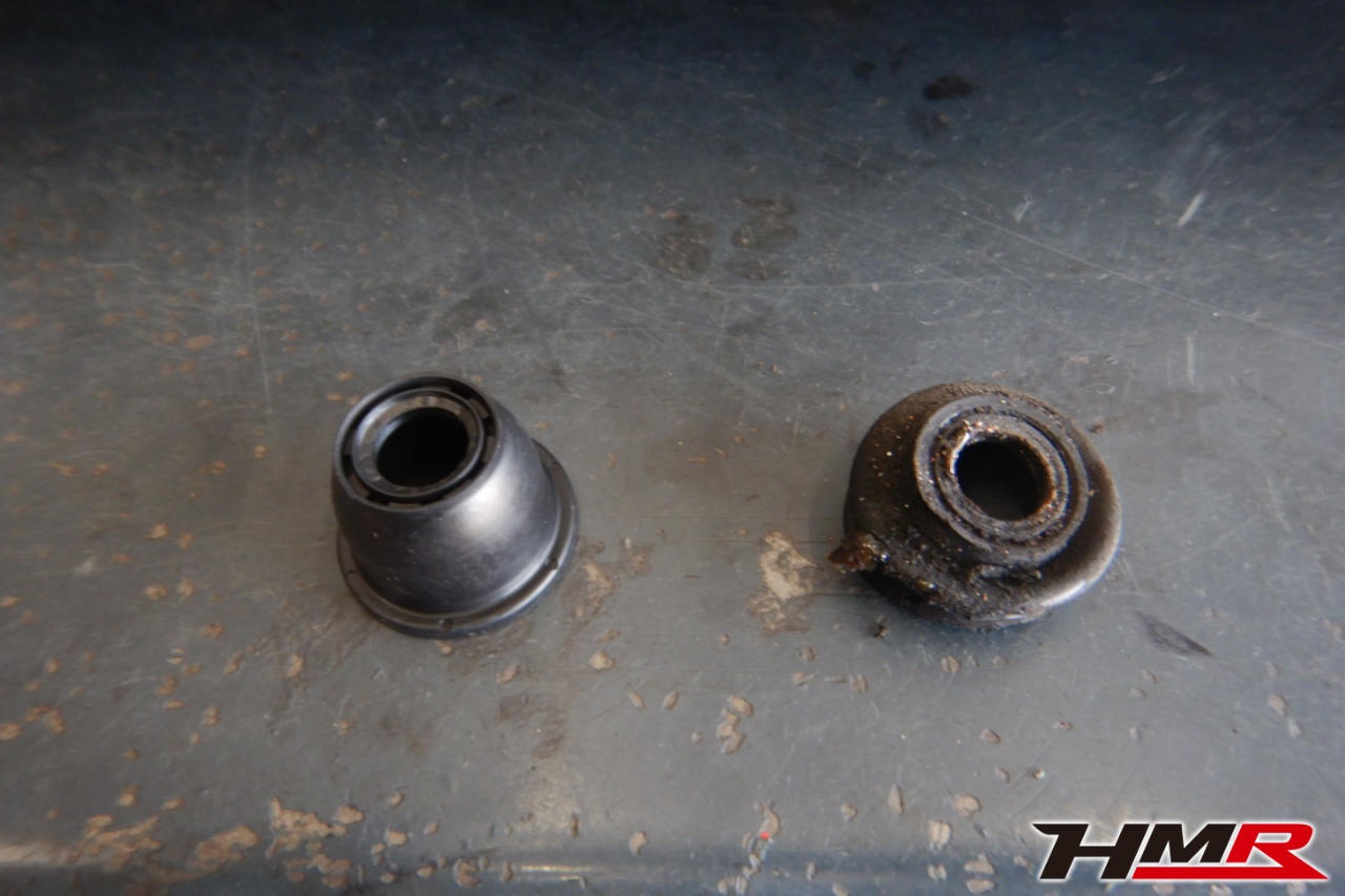 ハブベアリング・ボールジョイント、アーム・リンク類のガタ、ブッシュ・ブーツ類の劣化、エンジン・ミッション・デフからのオイル漏れと各マウント類、タイヤ溝の残量、空気圧の点検をしました。左タイロッドエンドブーツが切れていましたので交換しました。