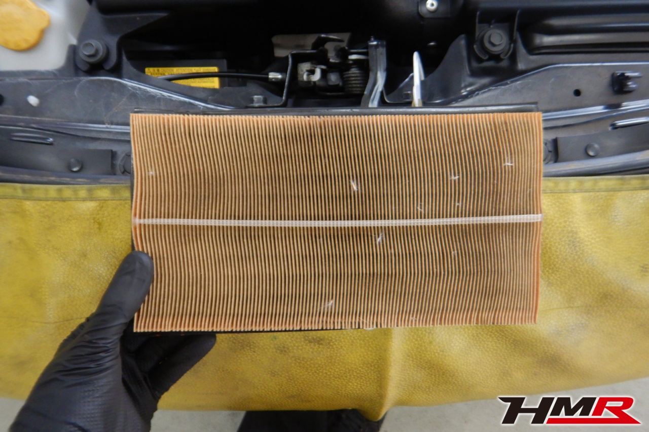 バッテリー、インテークホース、エアクリーナー、補機ベルト、プラグ、ブレーキ・クラッチマスターシリンダー、各部ゴム類の劣化、パッキン類・シール類からのオイル滲み・漏れ、ラジエターの劣化、冷却水漏れ、その他異音などをチェックしました。エアクリーナーに汚れが見られましたので交換しました。