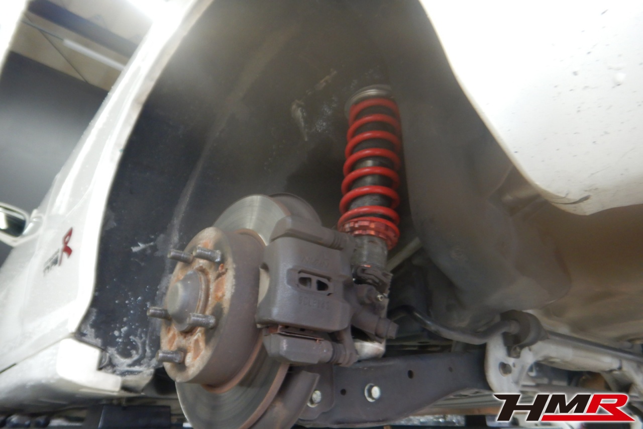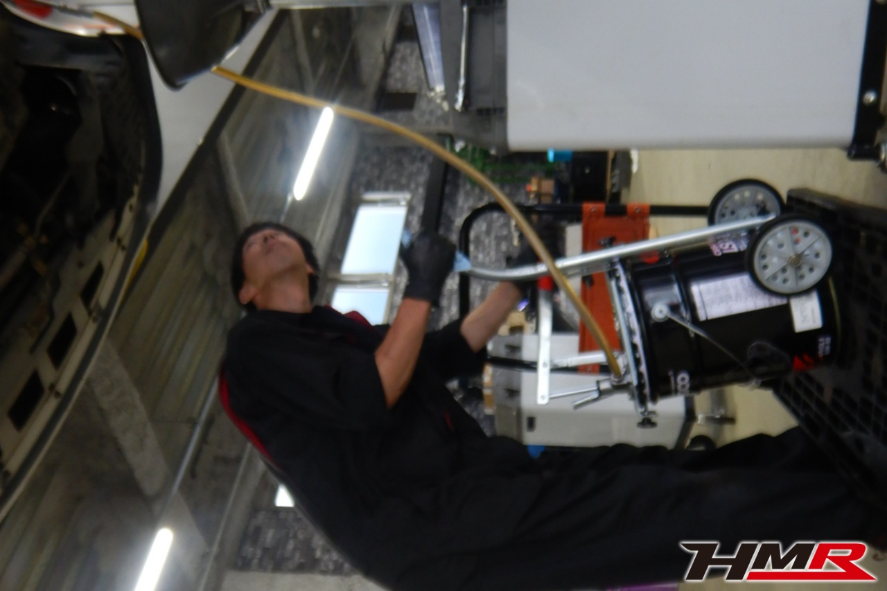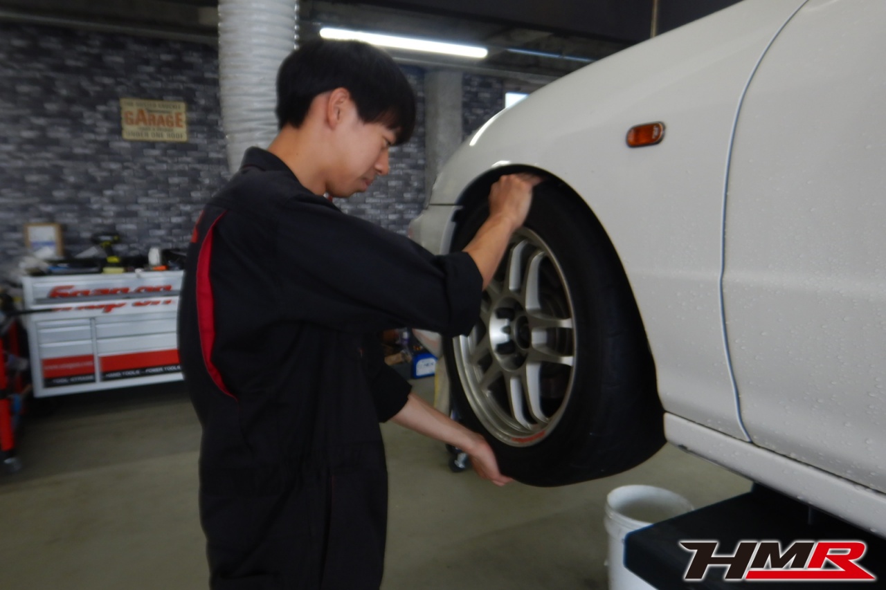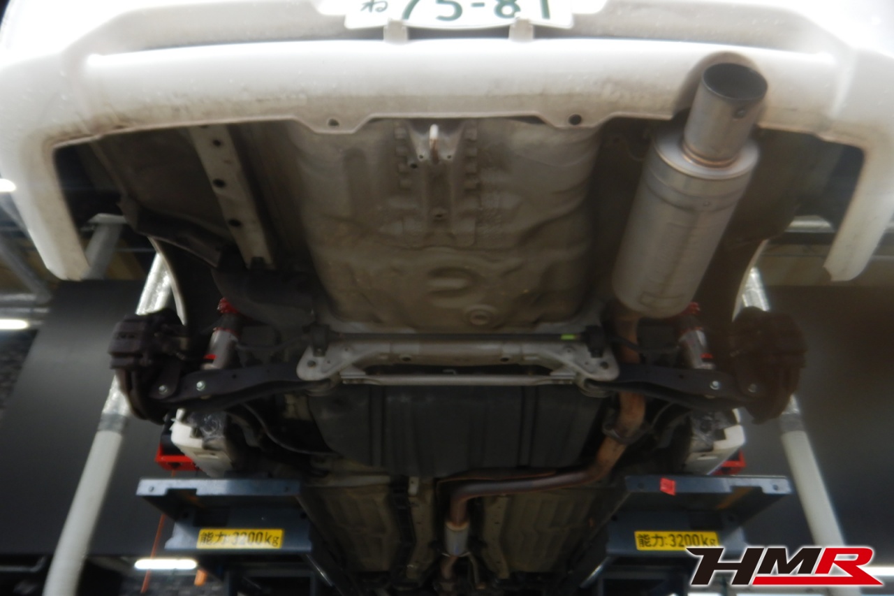 ハブベアリング・ボールジョイント、アーム・リンク類のガタ、ブッシュ・ブーツ類の劣化、エンジン・ミッション・デフからのオイル漏れと各マウント類、タイヤ溝の残量、空気圧の点検しました。右側インナードライブシャフトブーツに滲みが見られました。タイヤサイズはフロント205/45R16・リア195/55R15です。残り溝はフロント3.9mm・リア5.9mmでした。