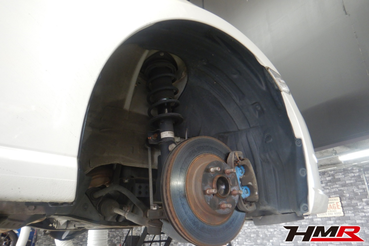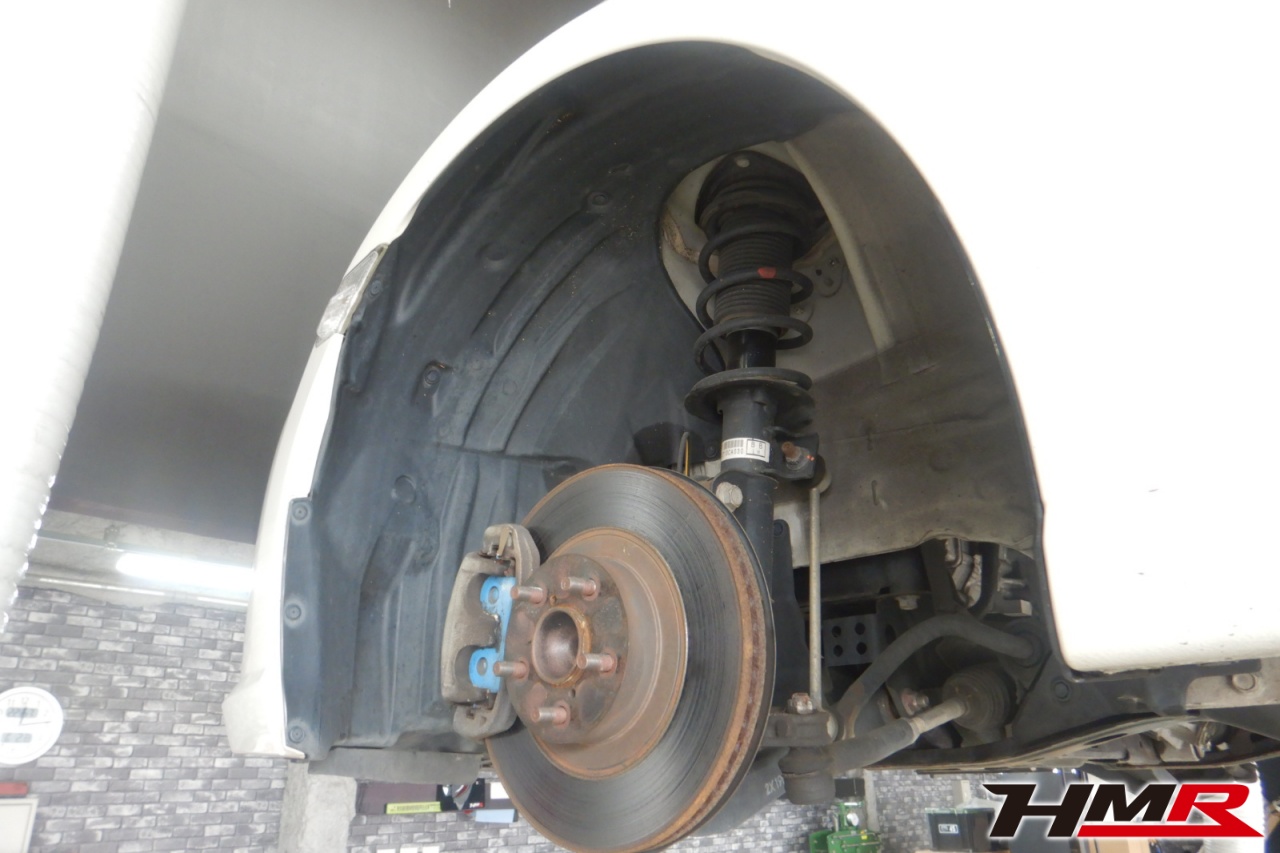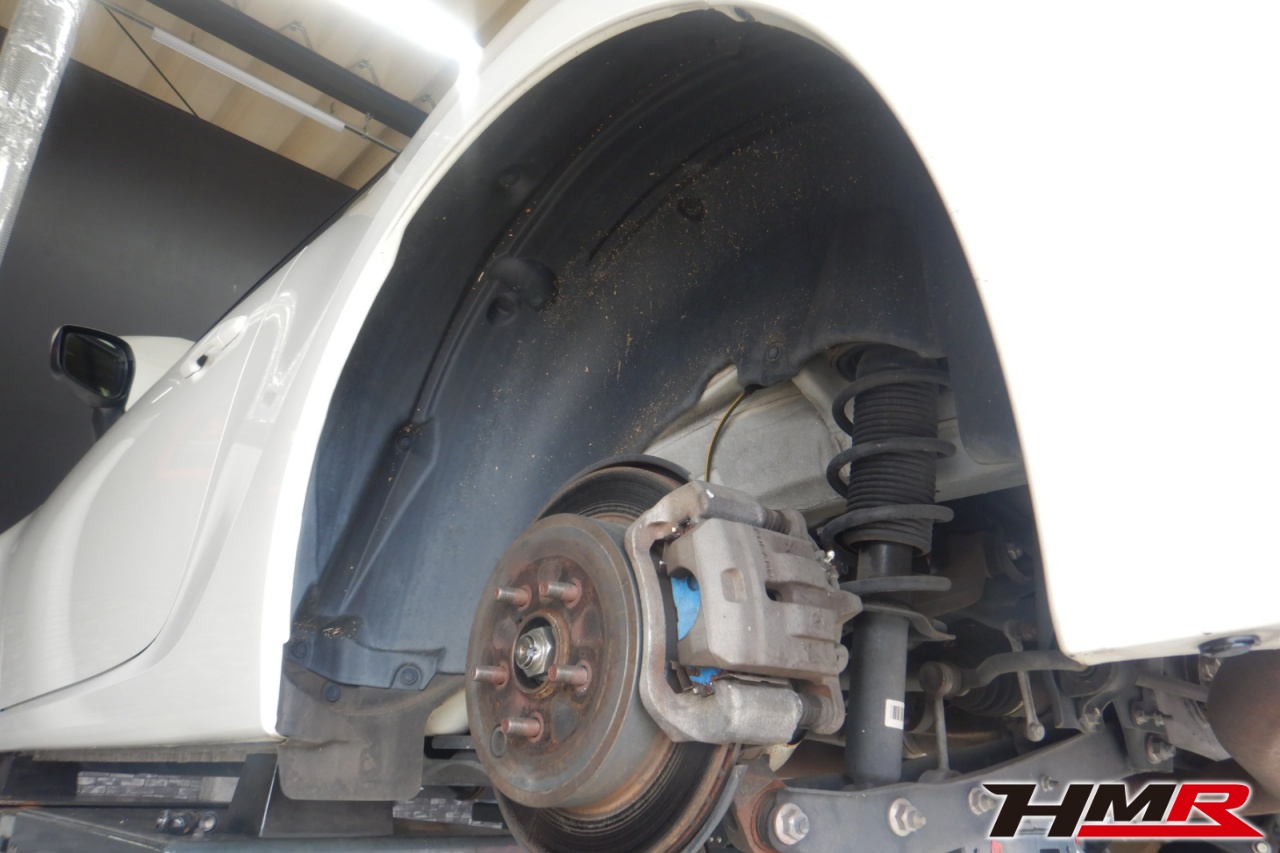 ハブベアリング・ボールジョイント、アーム・リンク類のガタ、ブッシュ・ブーツ類の劣化、エンジン・ミッション・デフからのオイル漏れと各マウント類、タイヤ溝の残量、空気圧の点検しました。