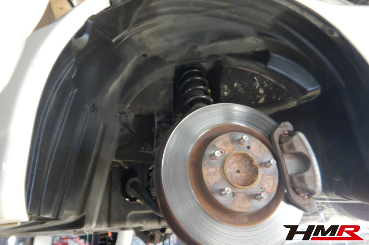 ハブベアリング・ボールジョイント、アーム・リンク類のガタ、ブッシュ・ブーツ類の劣化、エンジン・ミッション・デフからのオイル漏れと各マウント類、タイヤ溝の残量、空気圧の点検しました。右側タイロッドエンドブーツ、フロント左側スタビリンクブーツが切れていましたので交換しました。また左タイロッドエンドブーツ、左側フロントロアアームブーツにヒビが見られましたので今後交換することをおすすめします。