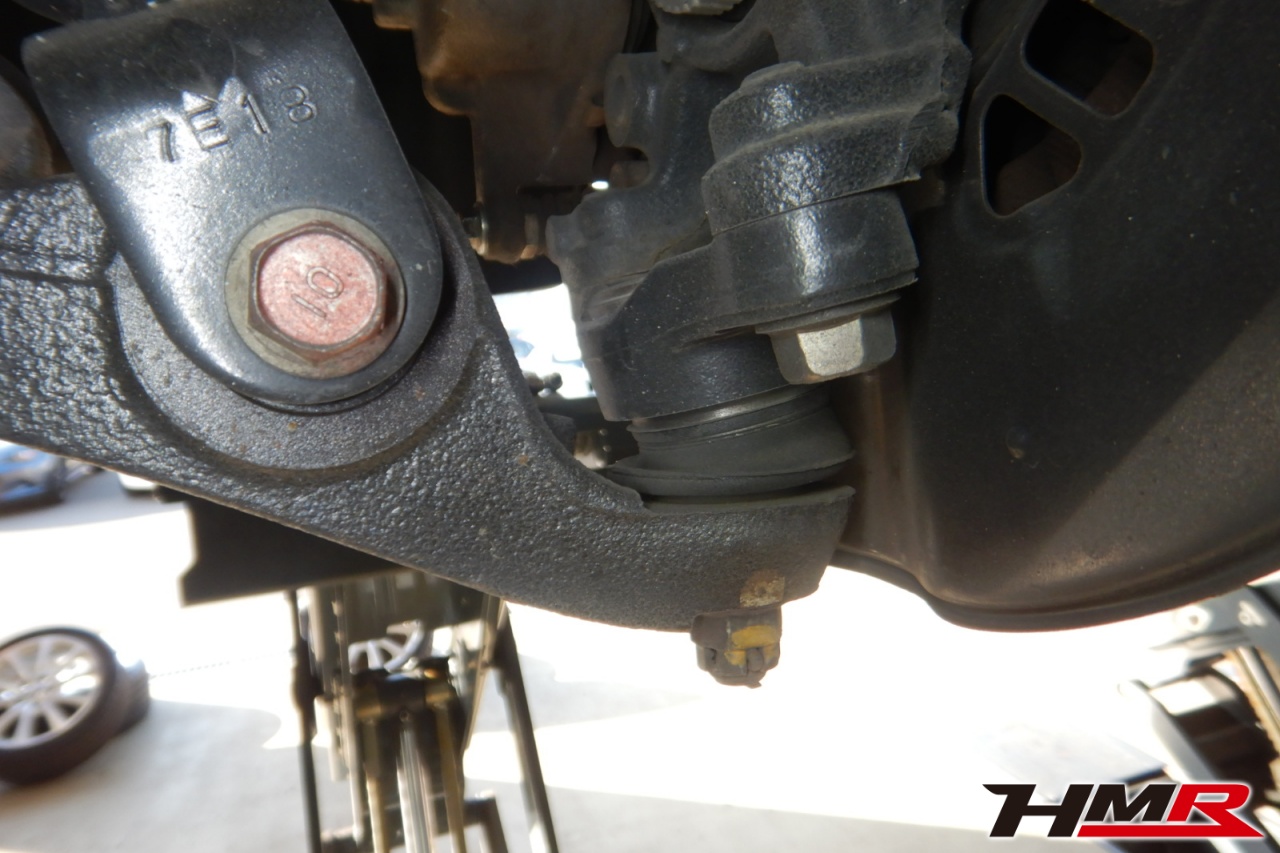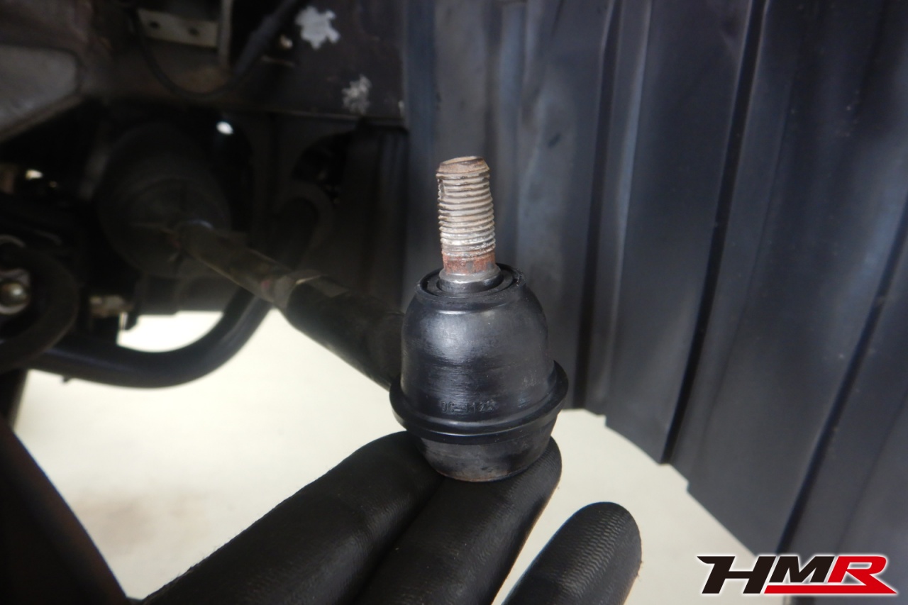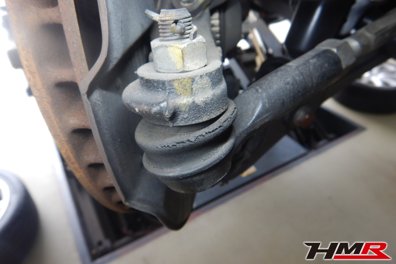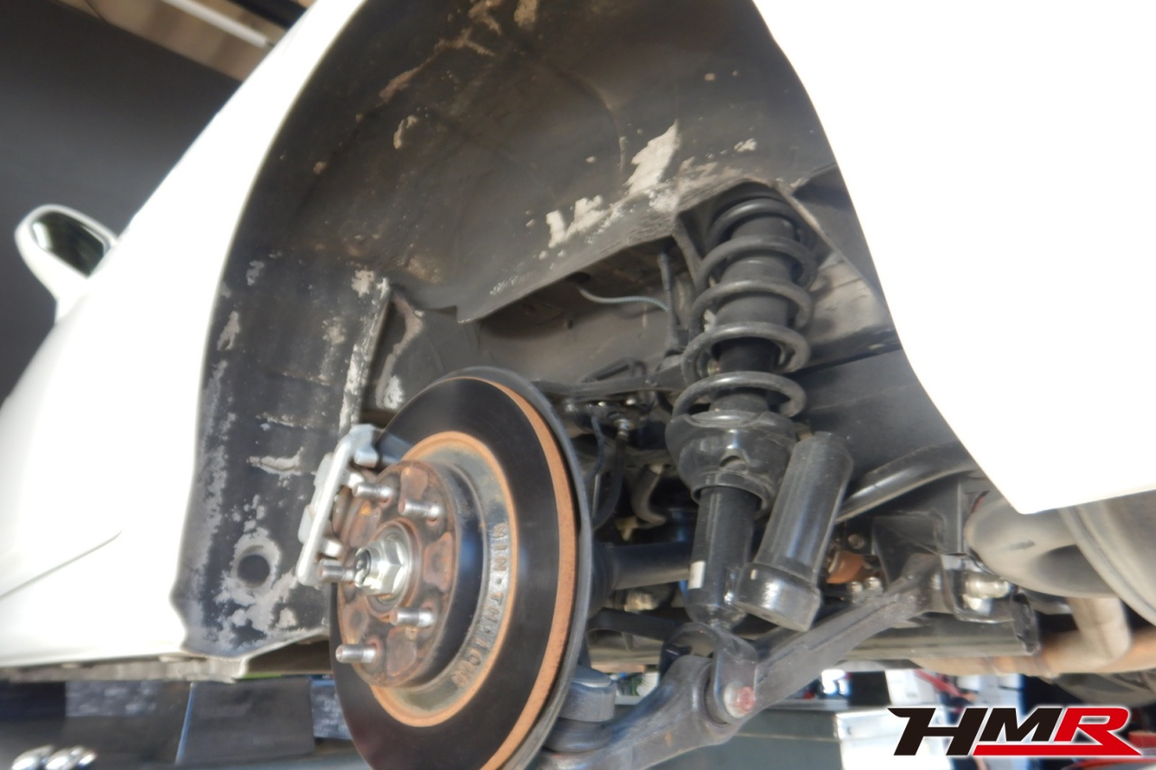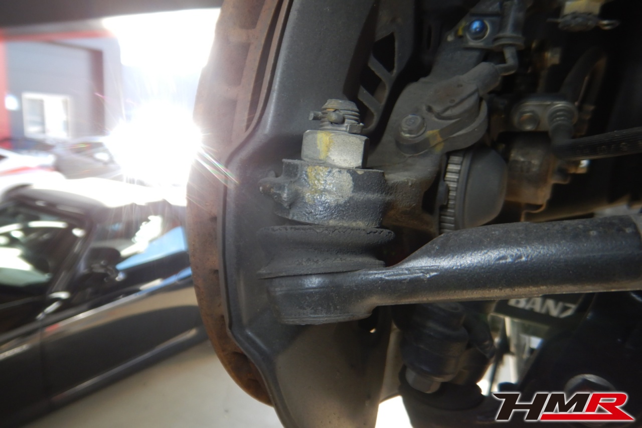 ハブベアリング・ボールジョイント、アーム・リンク類のガタ、ブッシュ・ブーツ類の劣化、エンジン・ミッション・デフからのオイル漏れと各マウント類、タイヤ溝の残量、空気圧の点検しました。右側タイロッドエンドブーツ、フロント左側スタビリンクブーツが切れていましたので交換しました。また左タイロッドエンドブーツ、左側フロントロアアームブーツにヒビが見られましたので今後交換することをおすすめします。