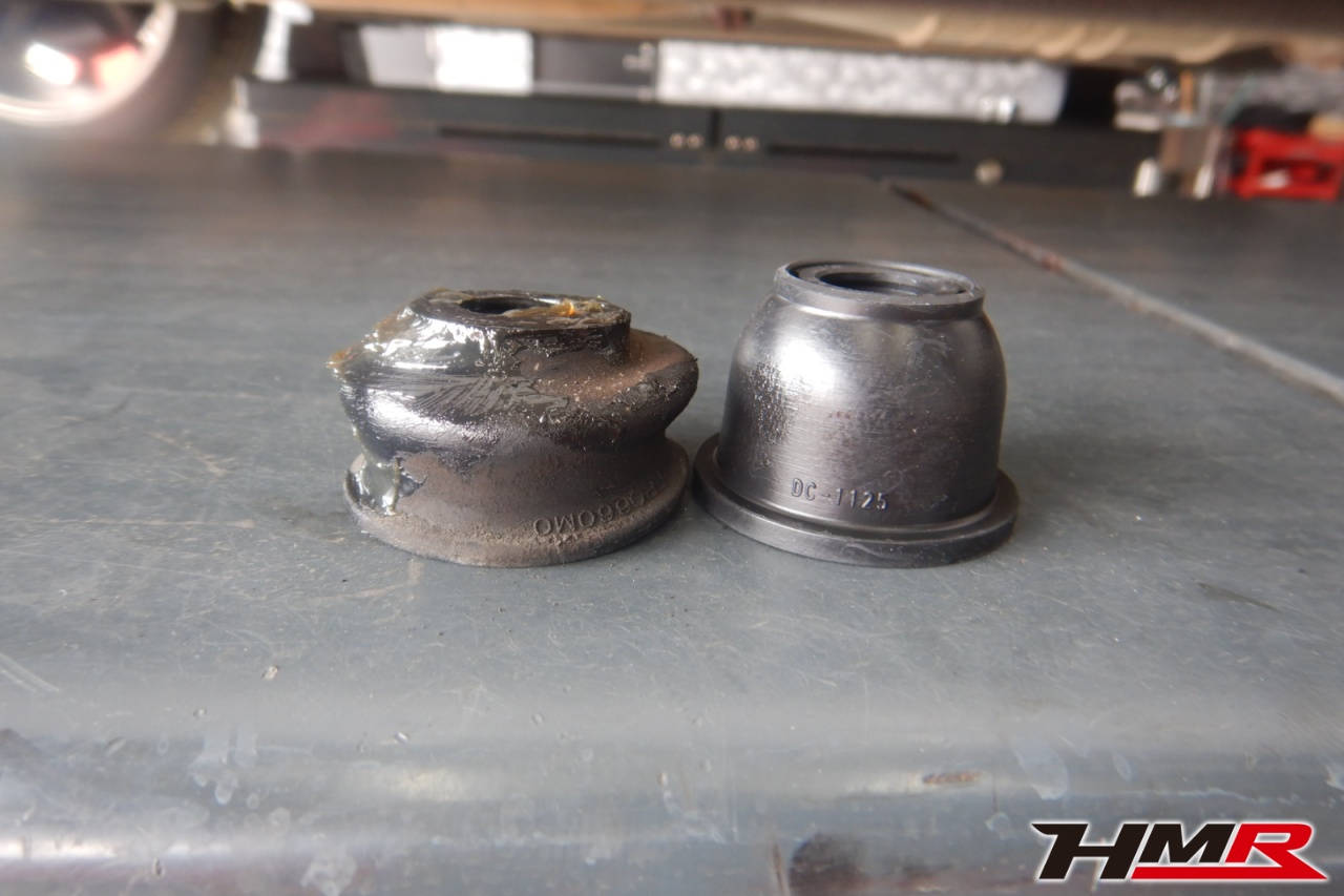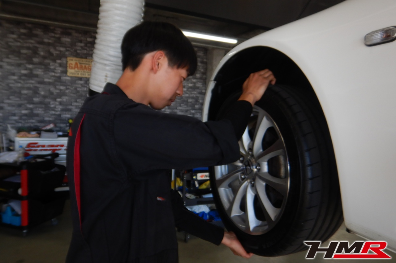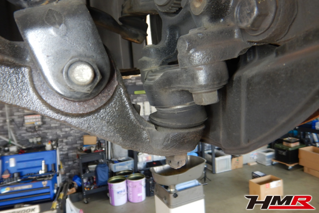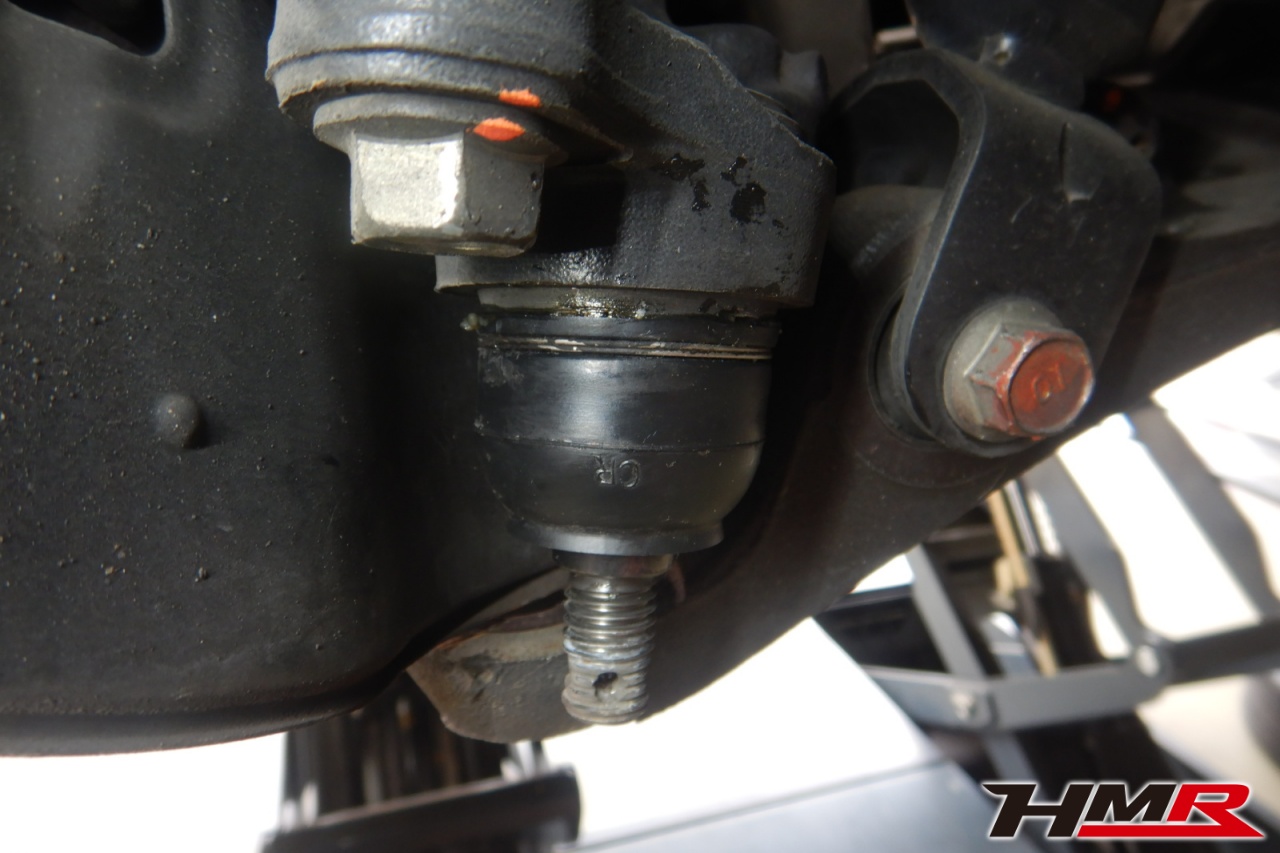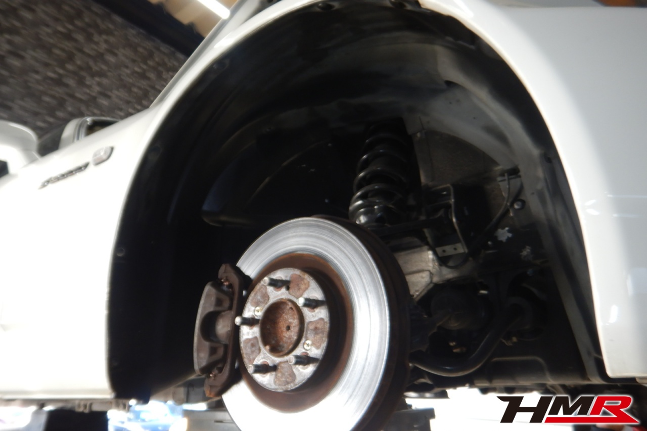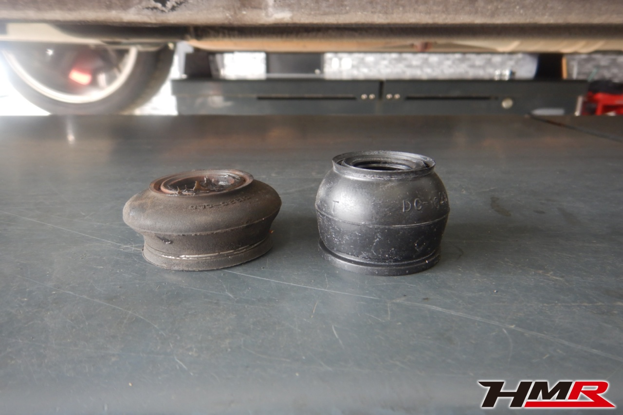 ハブベアリング・ボールジョイント、アーム・リンク類のガタ、ブッシュ・ブーツ類の劣化、エンジン・ミッション・デフからのオイル漏れと各マウント類、タイヤ溝の残量、空気圧の点検しました。右側タイロッドエンドブーツ、フロント左側スタビリンクブーツが切れていましたので交換しました。また左タイロッドエンドブーツ、左側フロントロアアームブーツにヒビが見られましたので今後交換することをおすすめします。