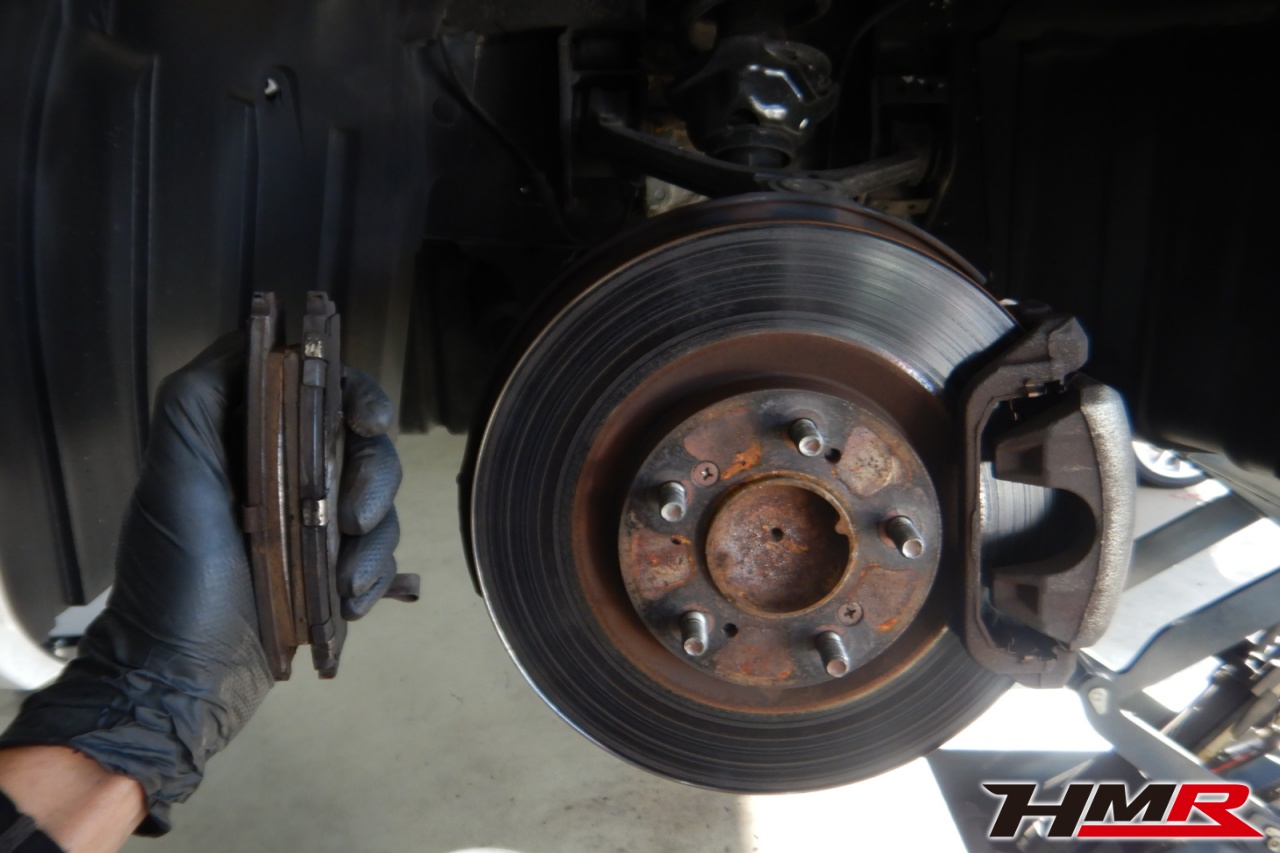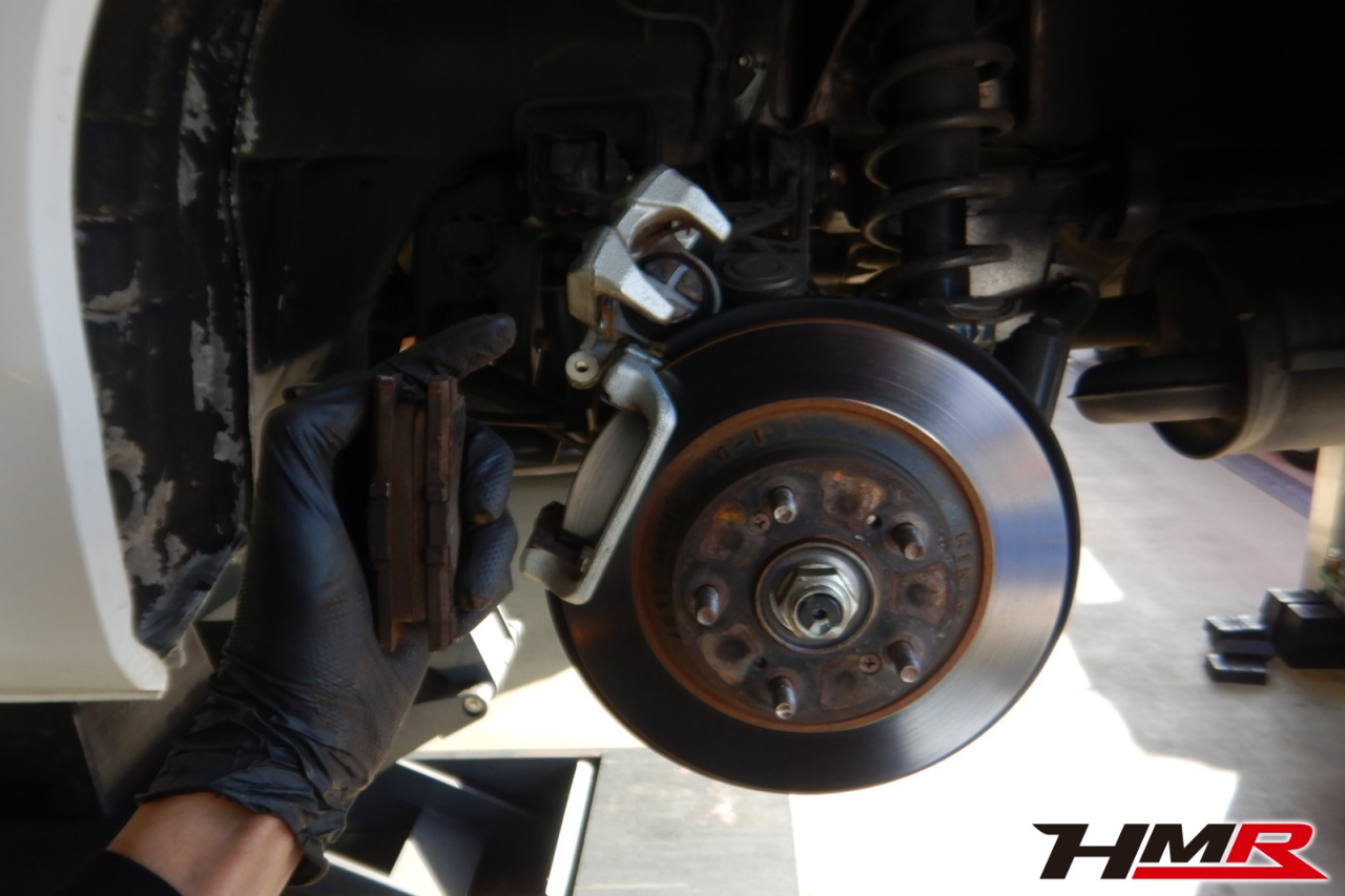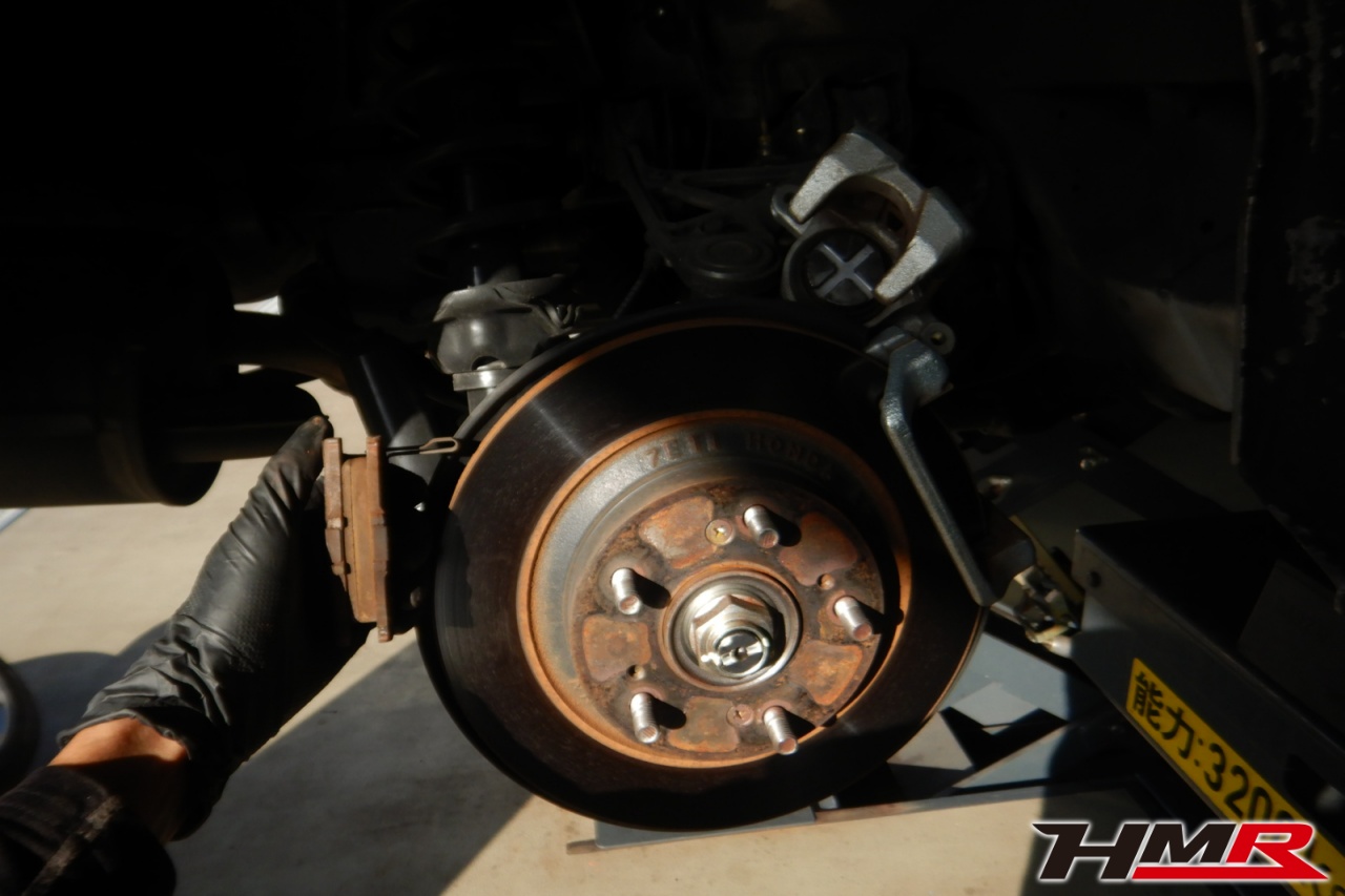 ブレーキキャリパーシール・キャリパーピストン、パッドの残量、ブレーキホースの劣化、ブレーキディスクローターの摩耗をチェックしました。ブレーキパッドの残量はおおよそフロント3.0mm・リア4.5mmでした。