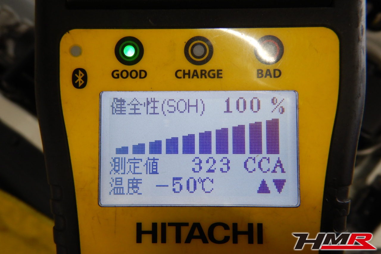 バッテリー、インテークホース、エアクリーナー、補機ベルト、プラグ、ブレーキ・クラッチマスターシリンダー、各部ゴム類の劣化、パッキン類・シール類からのオイル滲み・漏れ、ラジエターの劣化、冷却水漏れ、その他異音などをチェックしました。特に問題ありませんでした。