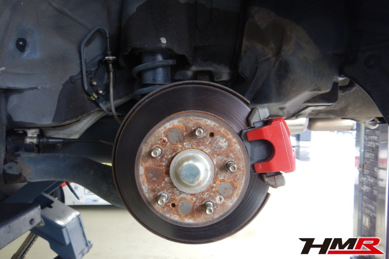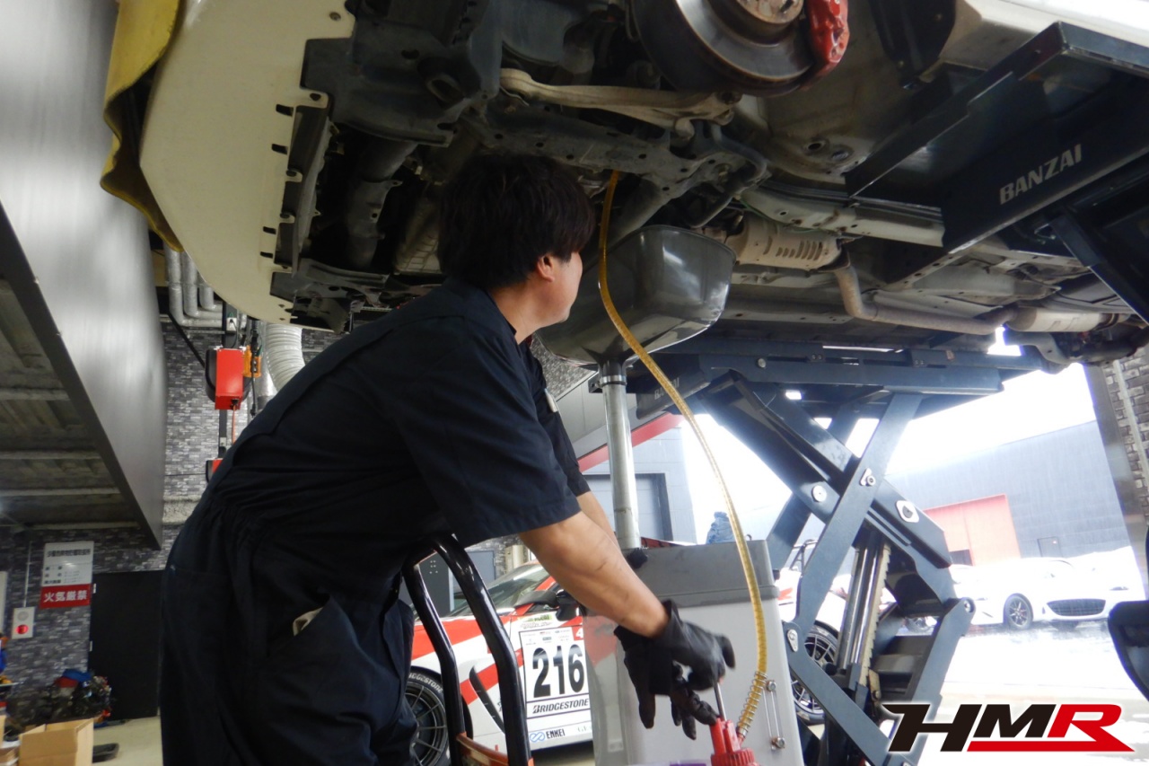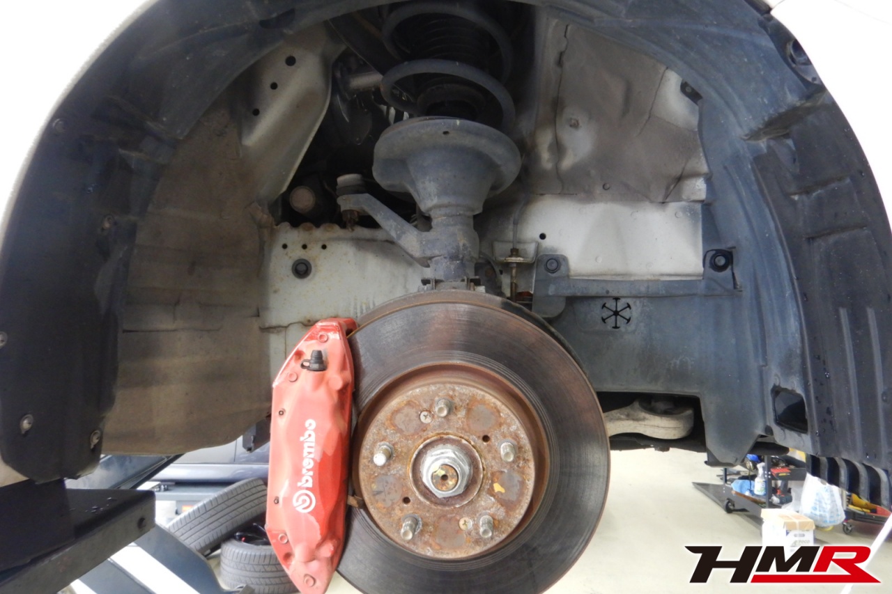ハブベアリング・ボールジョイント、アーム・リンク類のガタ、ブッシュ・ブーツ類の劣化、エンジン・ミッション・デフからのオイル漏れと各マウント類、タイヤ溝の残量、空気圧の点検しました。特に問題ありませんでした。