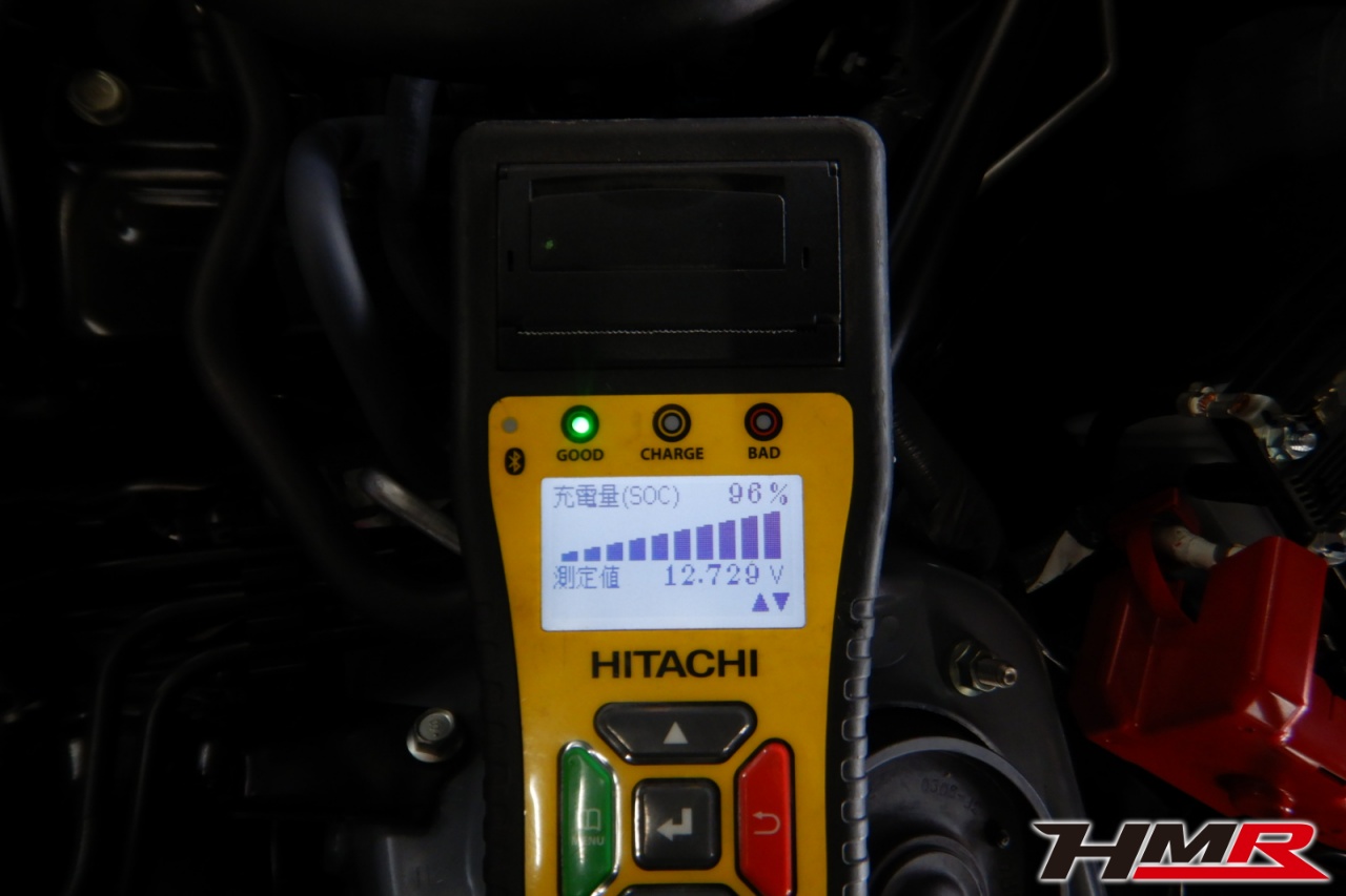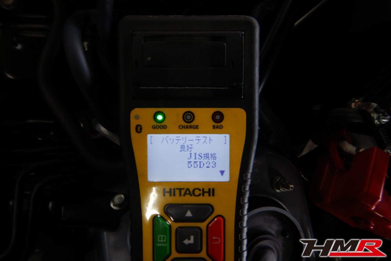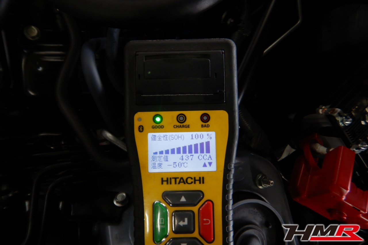 バッテリー、インテークホース、エアクリーナー、補機ベルト、プラグ、ブレーキ・クラッチマスターシリンダー、各部ゴム類の劣化、パッキン類・シール類からのオイル滲み・漏れ、ラジエターの劣化、冷却水漏れ、その他異音などをチェックしました。特に問題ありませんでした。