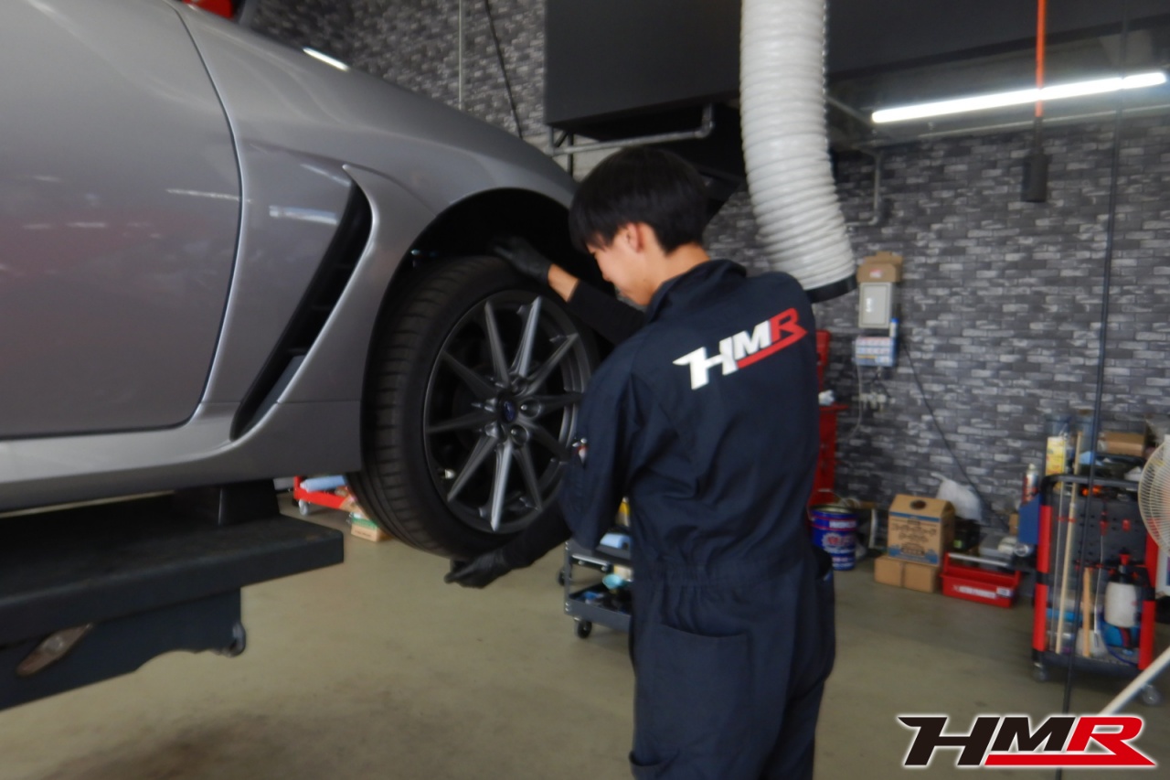HMR(エイチエムアール)の秋山です。今回は1オーナー6MT ナビ バックカメラ装着のスバル BRZ2.4S(ZD8)の納車前点検整備を行いました。担当メカニックは手代木です。