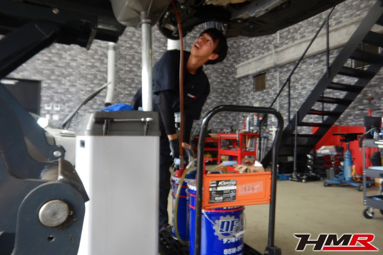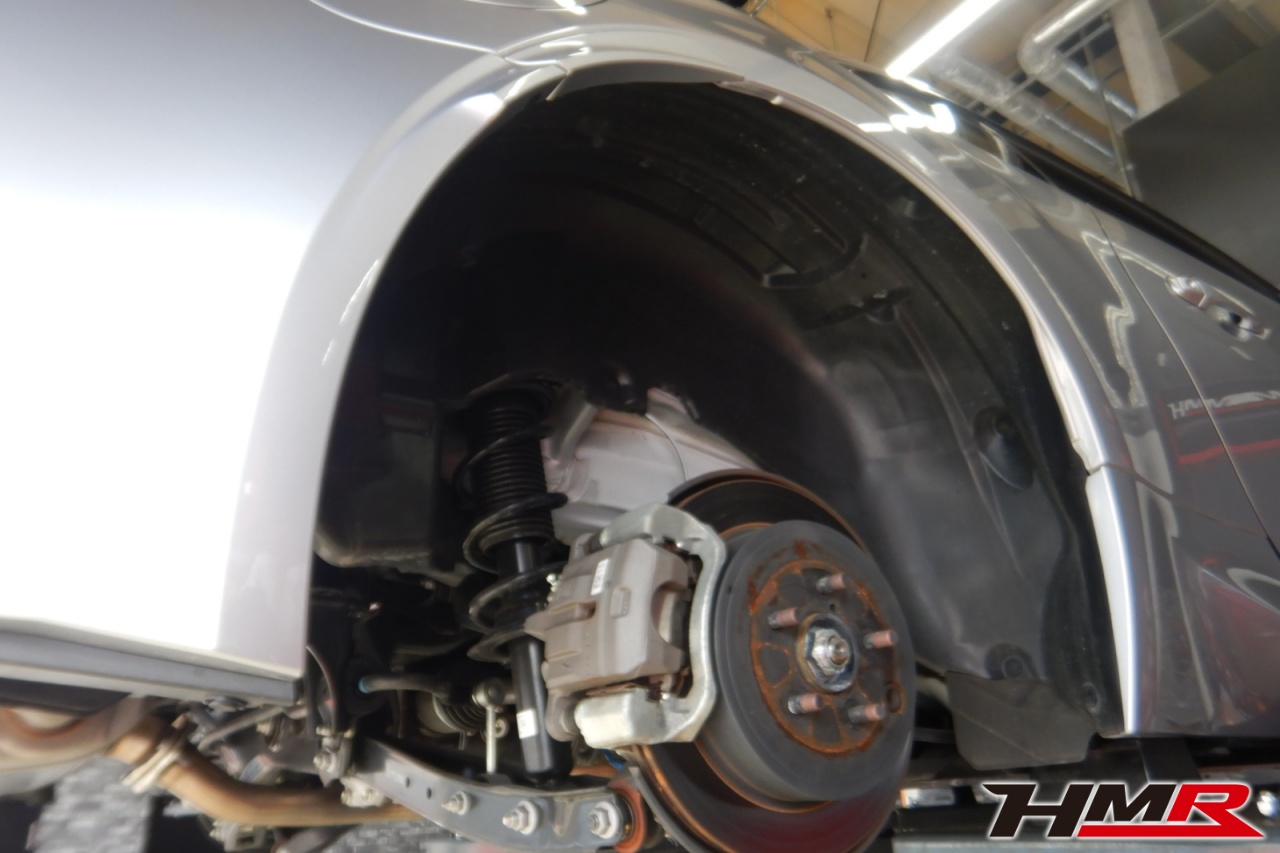 ハブベアリング・ボールジョイント、アーム・リンク類のガタ、ブッシュ・ブーツ類の劣化、エンジン・ミッション・デフからのオイル漏れと各マウント類、タイヤ溝の残量、空気圧の点検しました。特に問題ありませんでした。