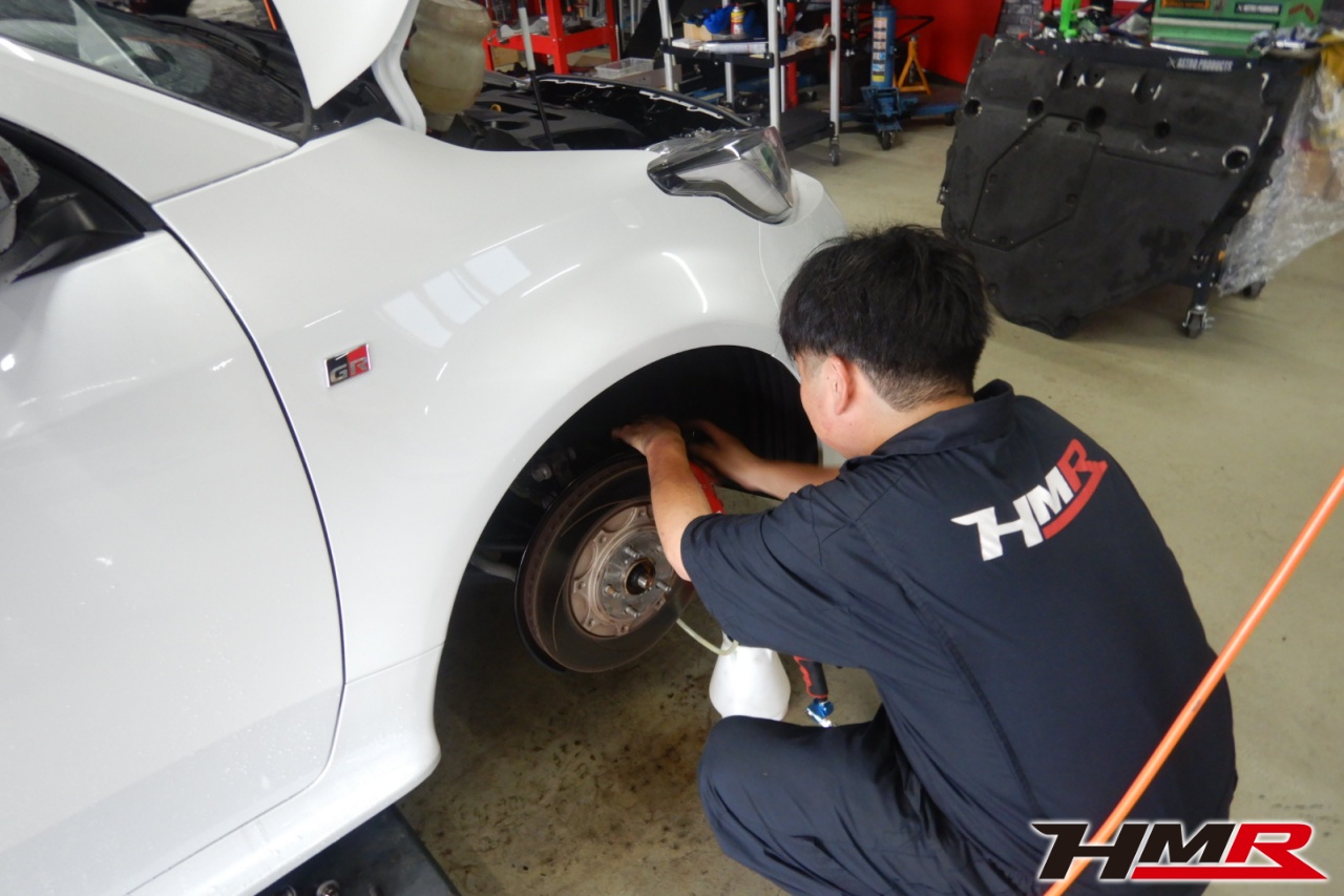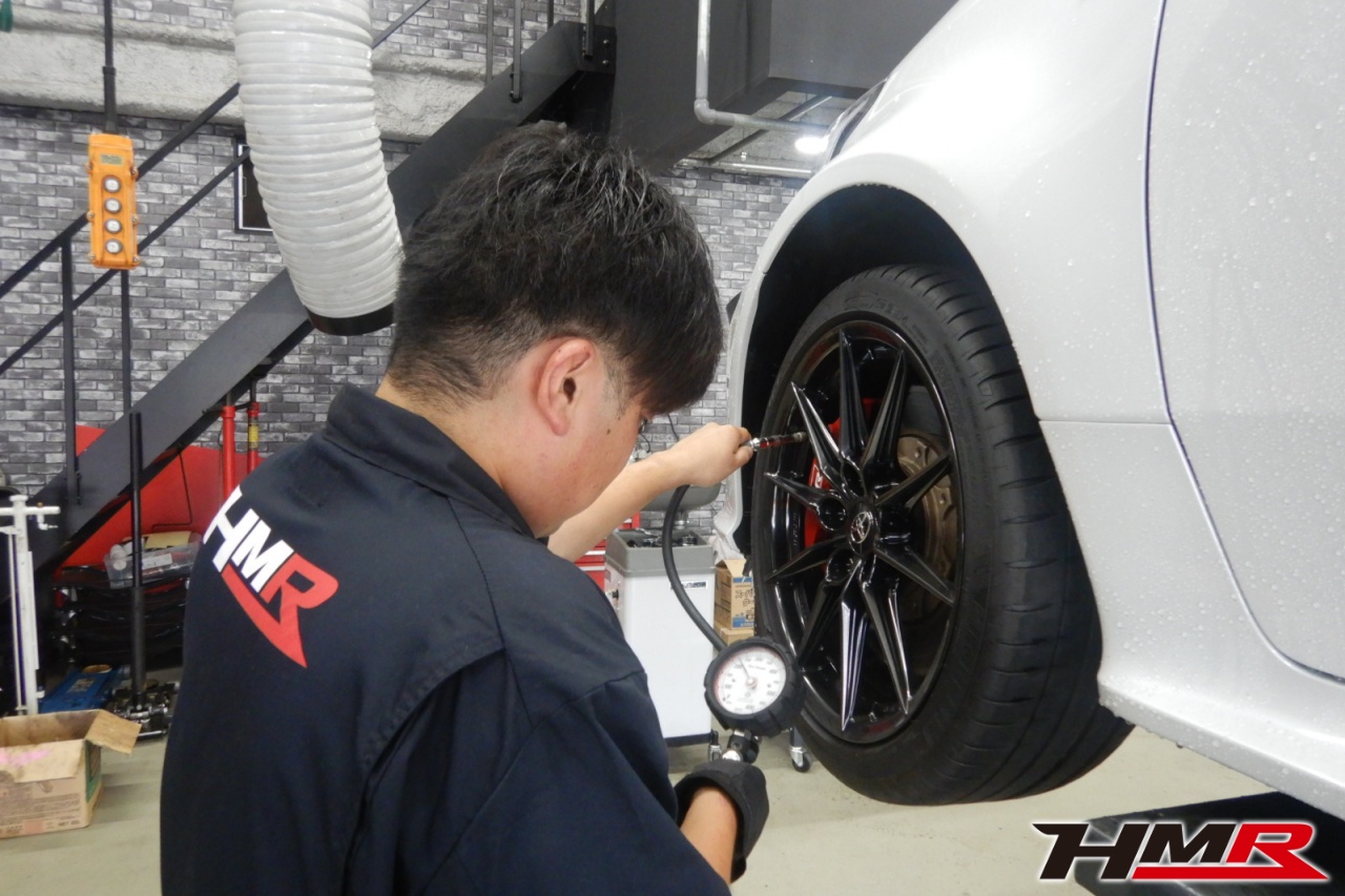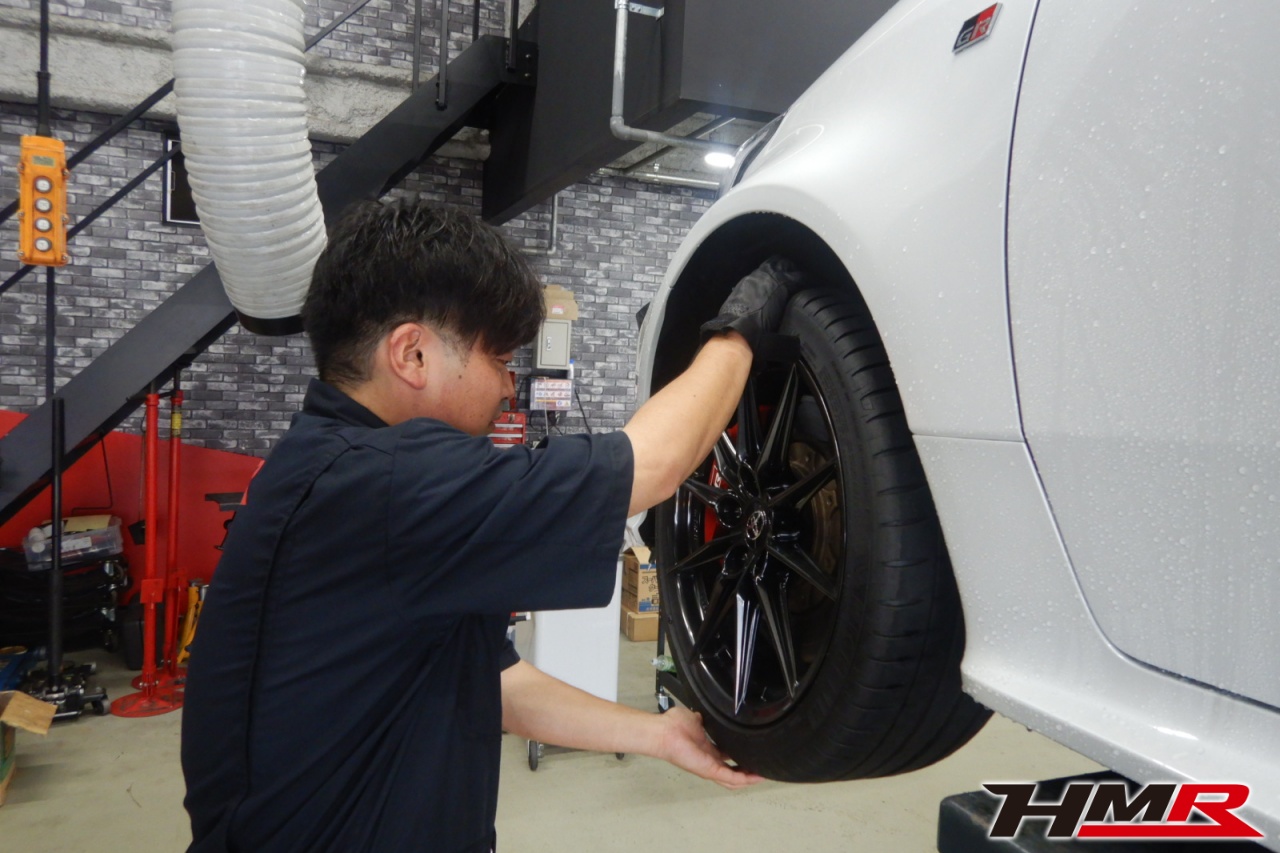 HMR(エイチエムアール)の秋山です。今回はHKS車高調 レーダー探知機 ETC装備のGRヤリス(GXPA16)の納車前点検整備を行いました。担当メカニックは藤来です。