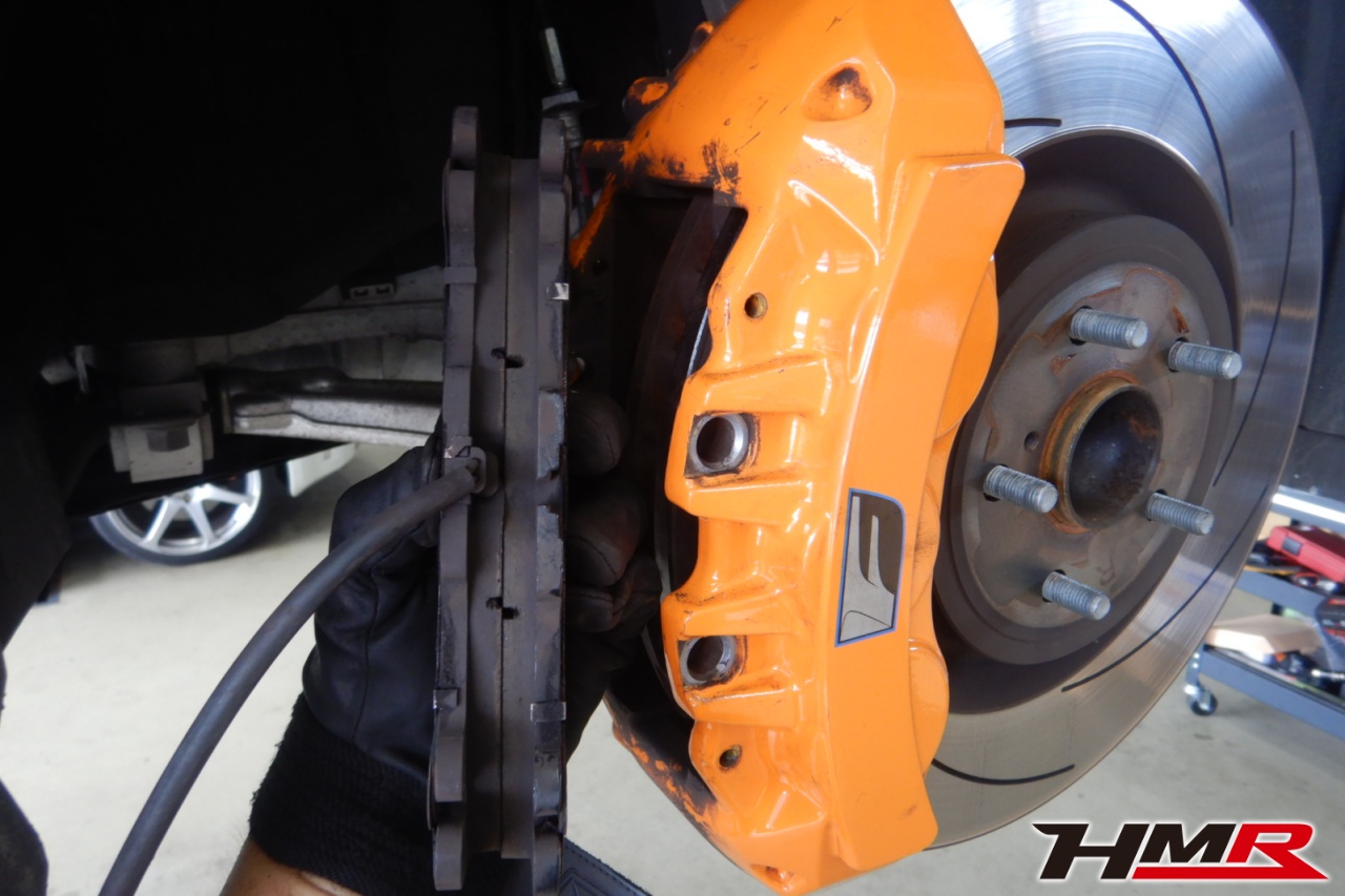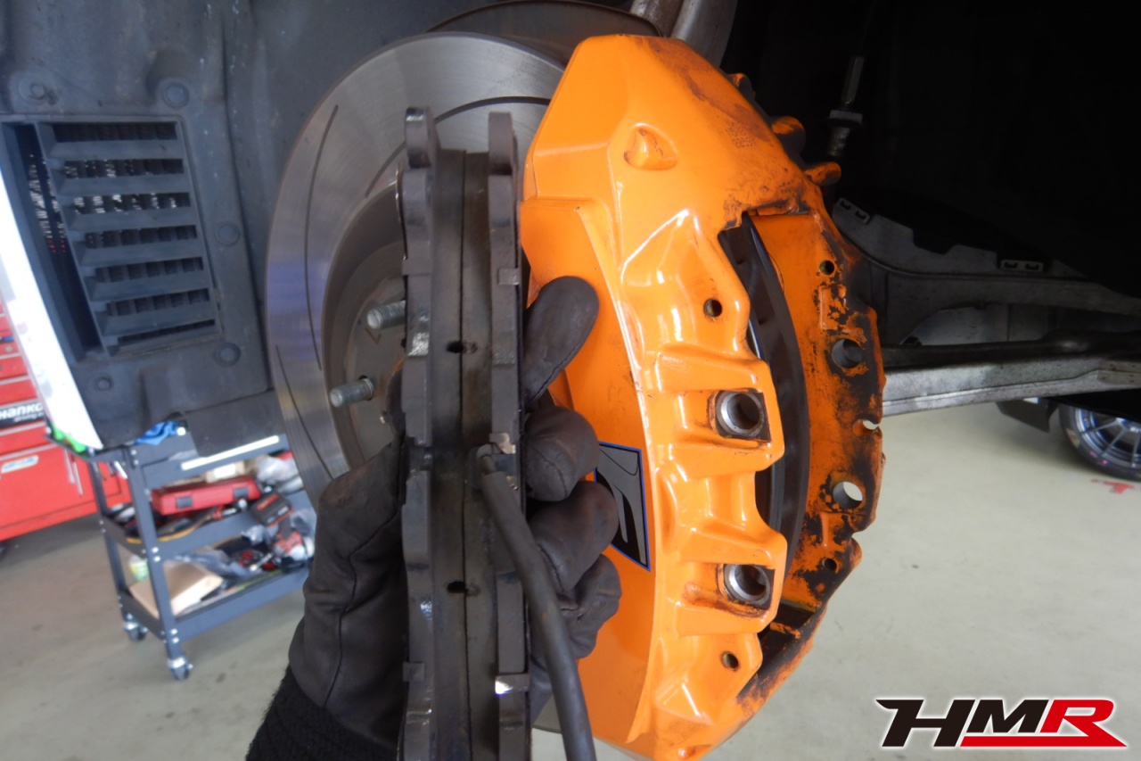 ブレーキキャリパーシール・キャリパーピストン、パッドの残量、ブレーキホースの劣化、ブレーキディスクローターの摩耗をチェックしました。パッドの残量はおおよそフロント7.7mm・リア8.1mmでした。