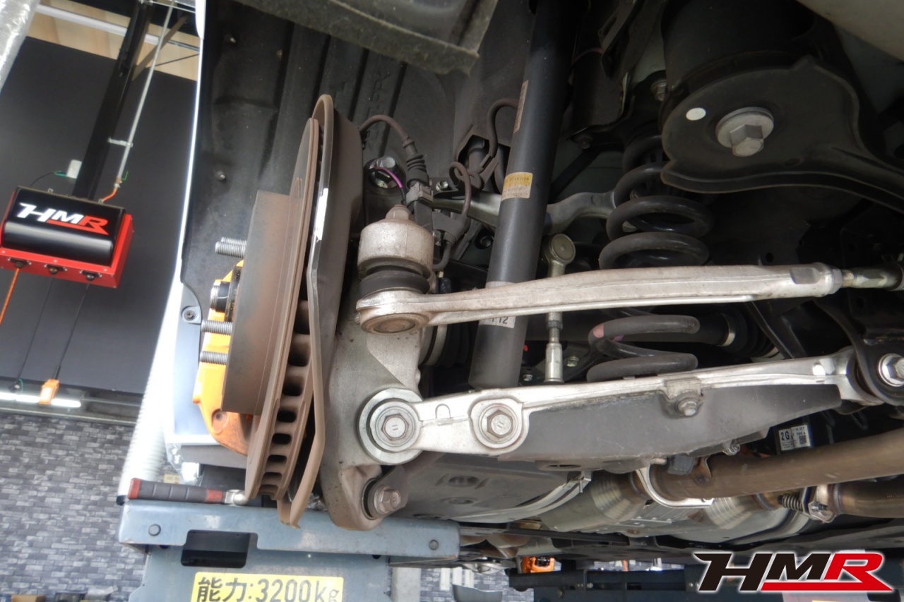 ハブベアリング・ボールジョイント、アーム・リンク類のガタ、ブッシュ・ブーツ類の劣化、エンジン・ミッション・デフからのオイル漏れと各マウント類、タイヤ溝の残量、空気圧の点検しました。特に問題ありませんでした。タイヤの残り溝はおおよそフロント4.0mm・リア5.5mmでした。