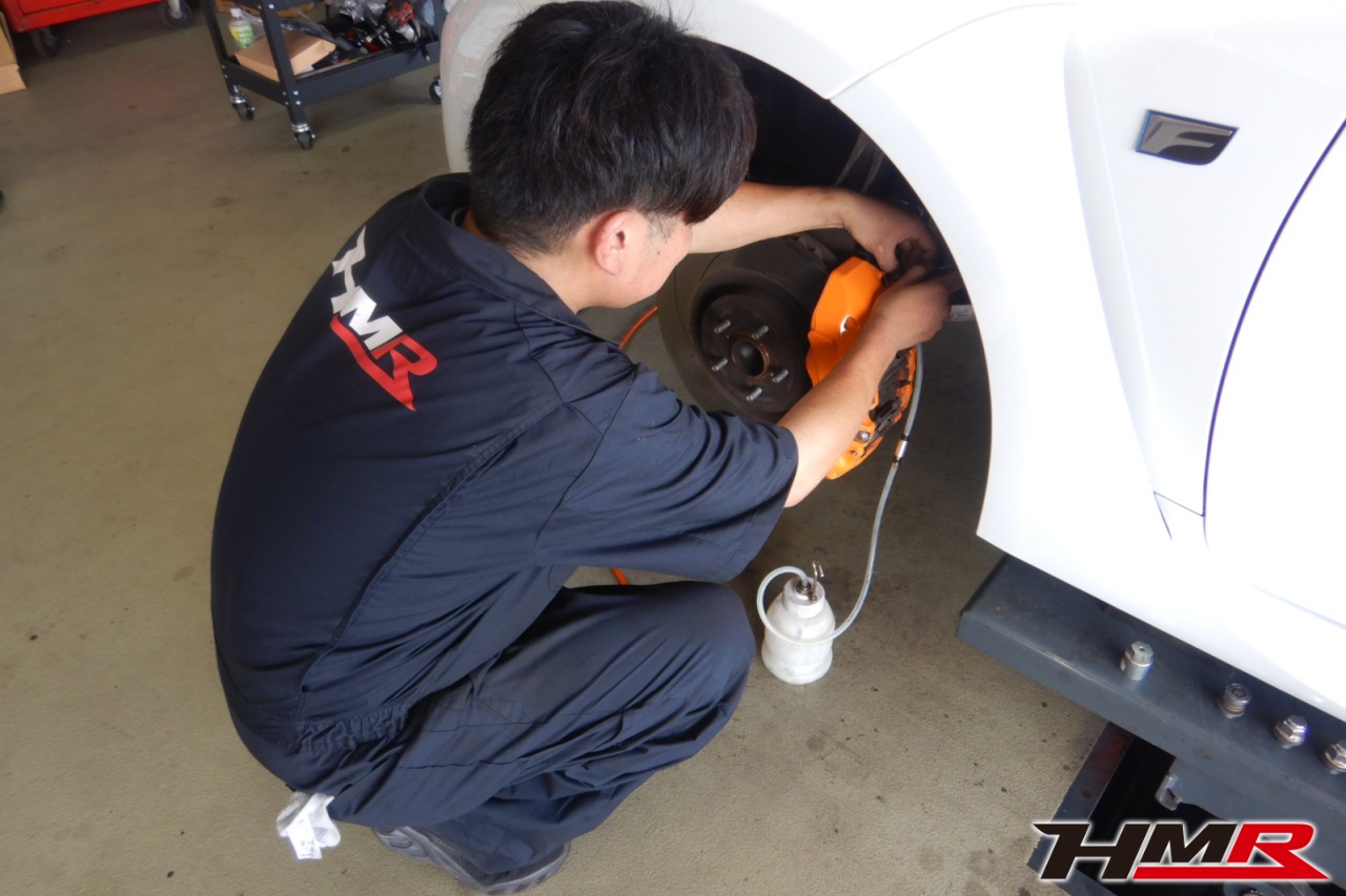 HMR(エイチエムアール)の秋山です。今回は1オーナー ブラック×オレンジ本革シート装備のRC-F5.0(USC10)の納車前点検整備を行いました 。担当メカニックは藤来です。