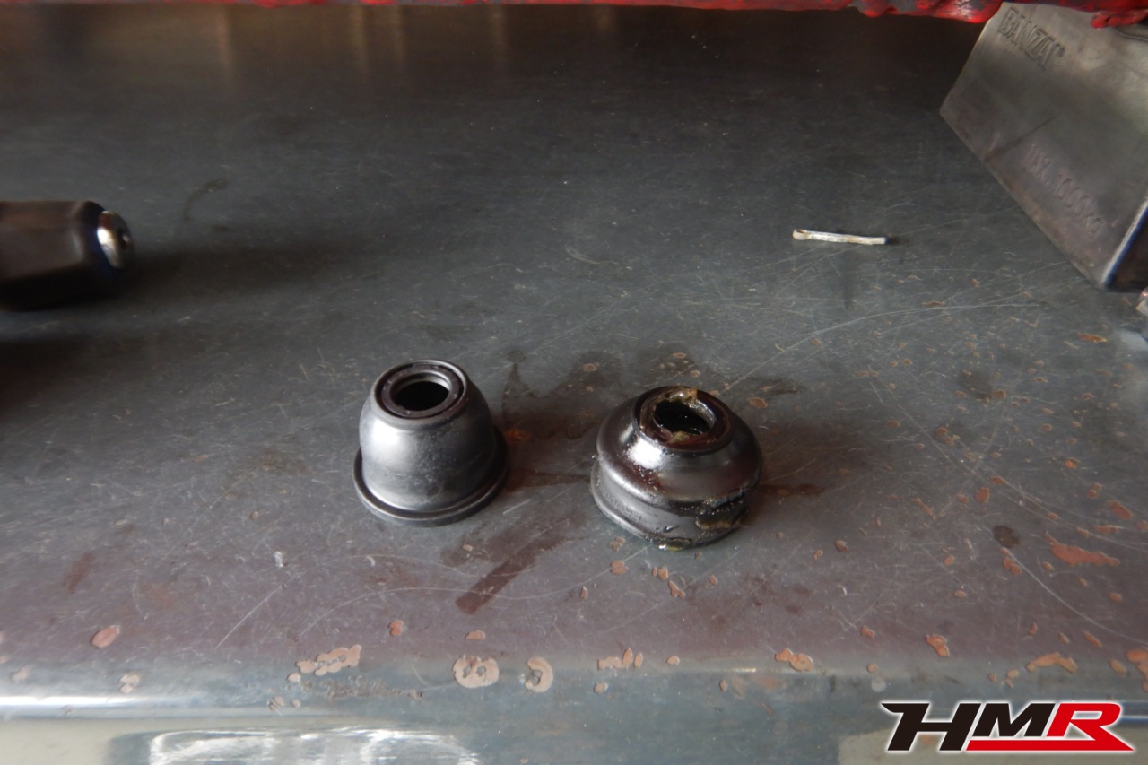 ハブベアリング・ボールジョイント、アーム・リンク類のガタ、ブッシュ・ブーツ類の劣化、エンジン・ミッション・デフからのオイル漏れと各マウント類、タイヤ溝の残量、空気圧の点検しました。右側タイロッドエンドブーツ、左右フロントロアアームブッシュ、右側フロントスタビリンクブーツに切れ、ヒビがありましたので交換しました。