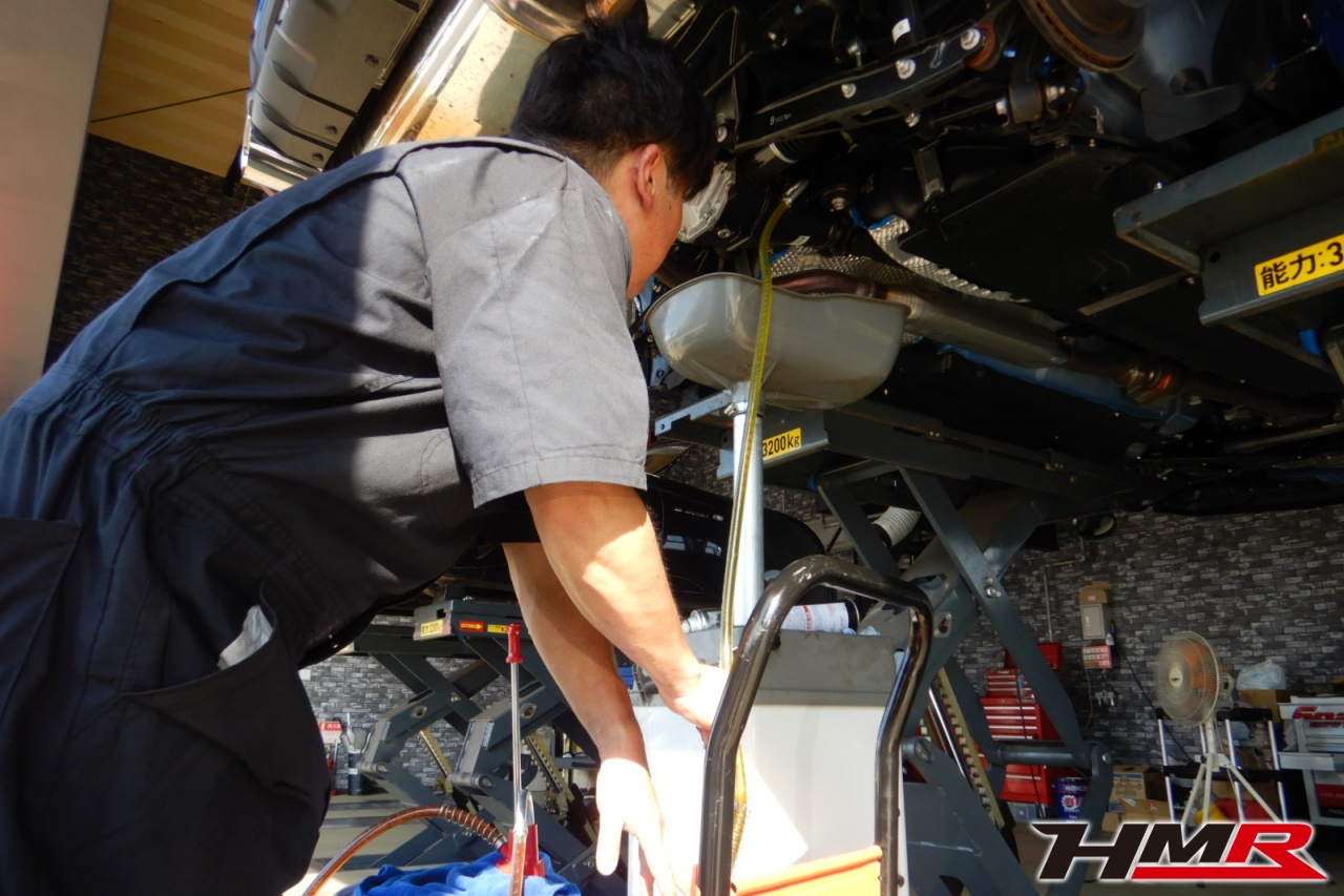 ハブベアリング・ボールジョイント、アーム・リンク類のガタ、ブッシュ・ブーツ類の劣化、エンジン・ミッション・デフからのオイル漏れと各マウント類、タイヤ溝の残量、空気圧の点検しました。特に問題ありませんでした。