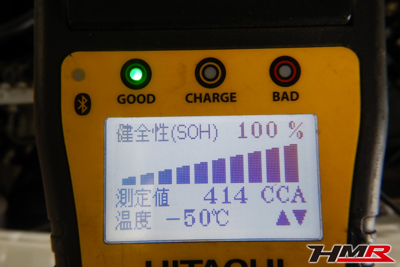 バッテリー、インテークホース、エアクリーナー、補機ベルト、プラグ、ブレーキ・クラッチマスターシリンダー、各部ゴム類の劣化、パッキン類・シール類からのオイル滲み・漏れ、ラジエターの劣化、冷却水漏れ、その他異音などをチェックしました。特に問題ありませんでした。