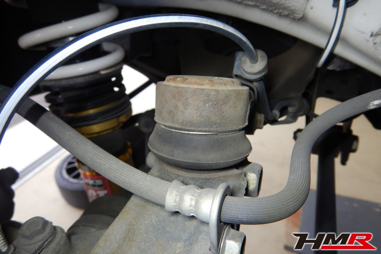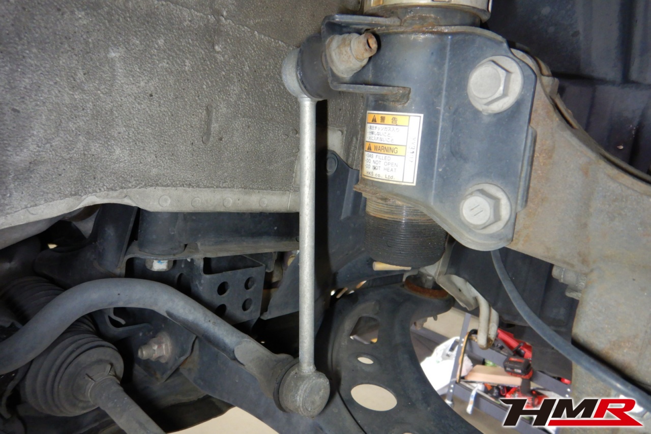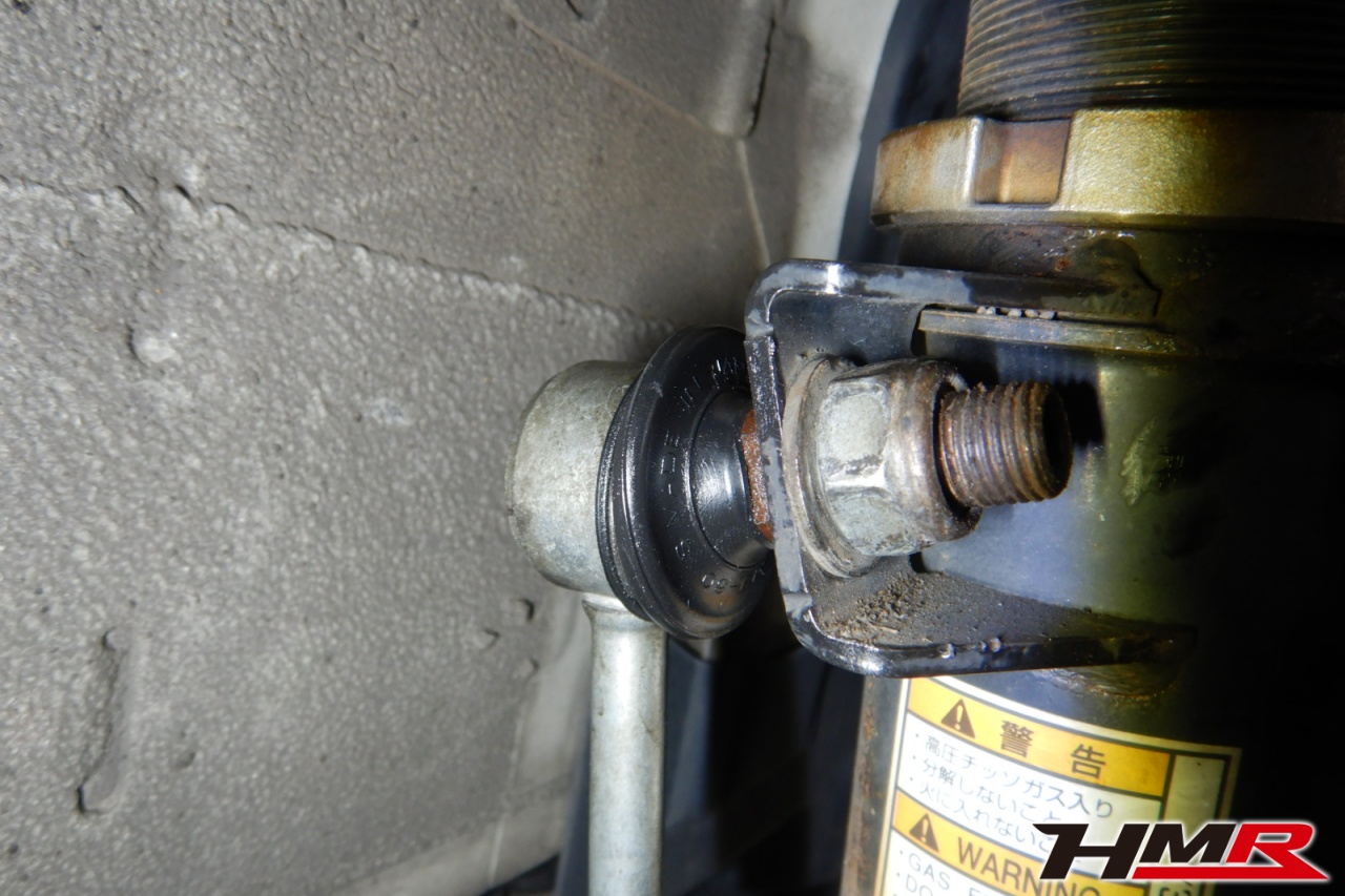 ハブベアリング・ボールジョイント、アーム・リンク類のガタ、ブッシュ・ブーツ類の劣化、エンジン・ミッション・デフからのオイル漏れと各マウント類、タイヤ溝の残量、空気圧の点検を行いました。スタビリンクに切れがありましたので交換しました。