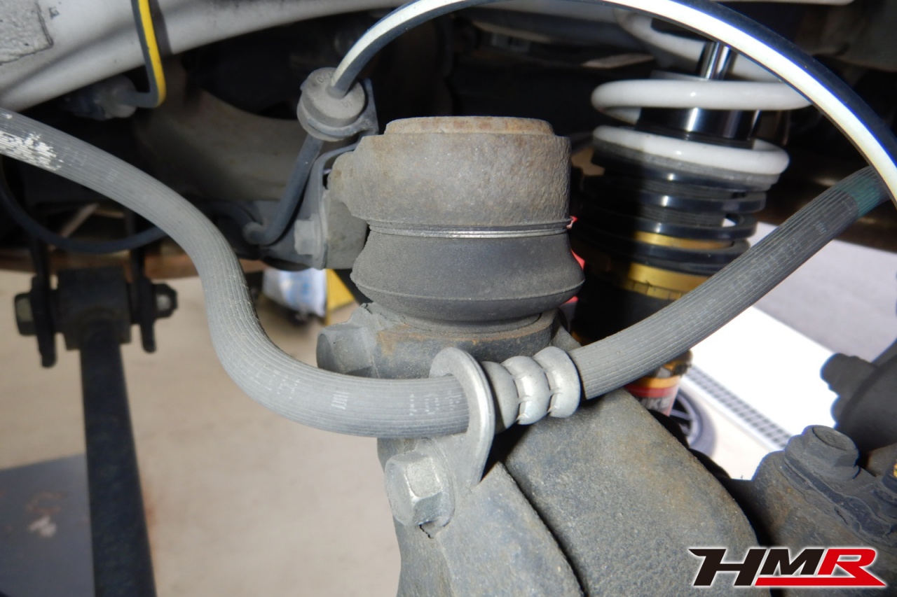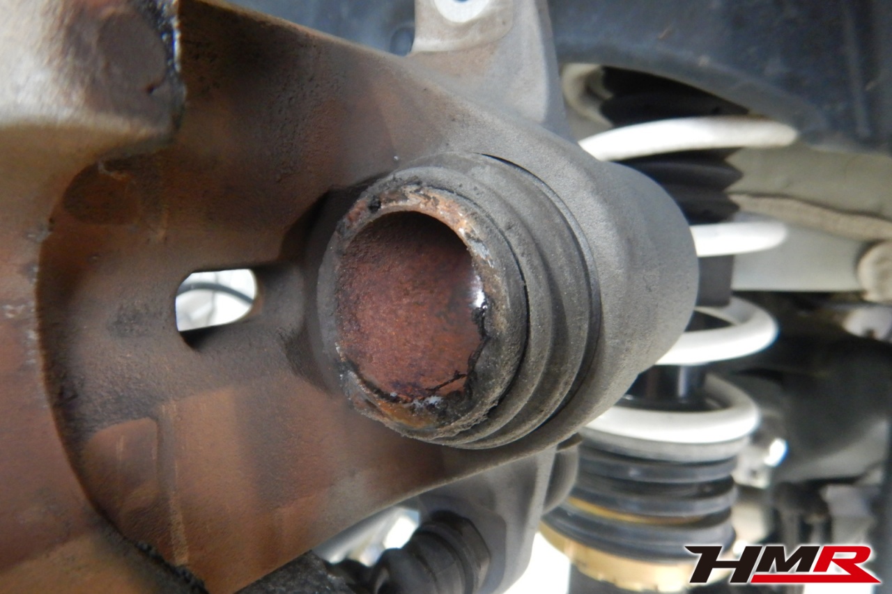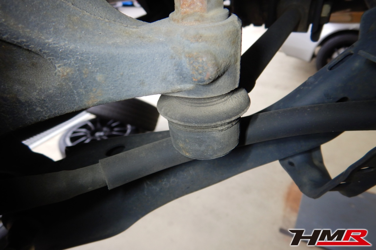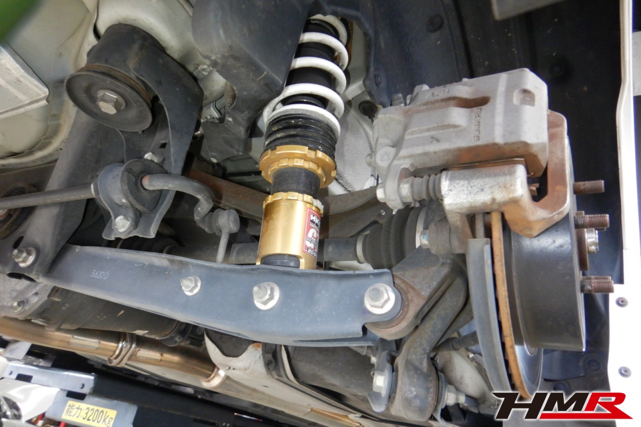 ハブベアリング・ボールジョイント、アーム・リンク類のガタ、ブッシュ・ブーツ類の劣化、エンジン・ミッション・デフからのオイル漏れと各マウント類、タイヤ溝の残量、空気圧の点検を行いました。スタビリンクに切れがありましたので交換しました。