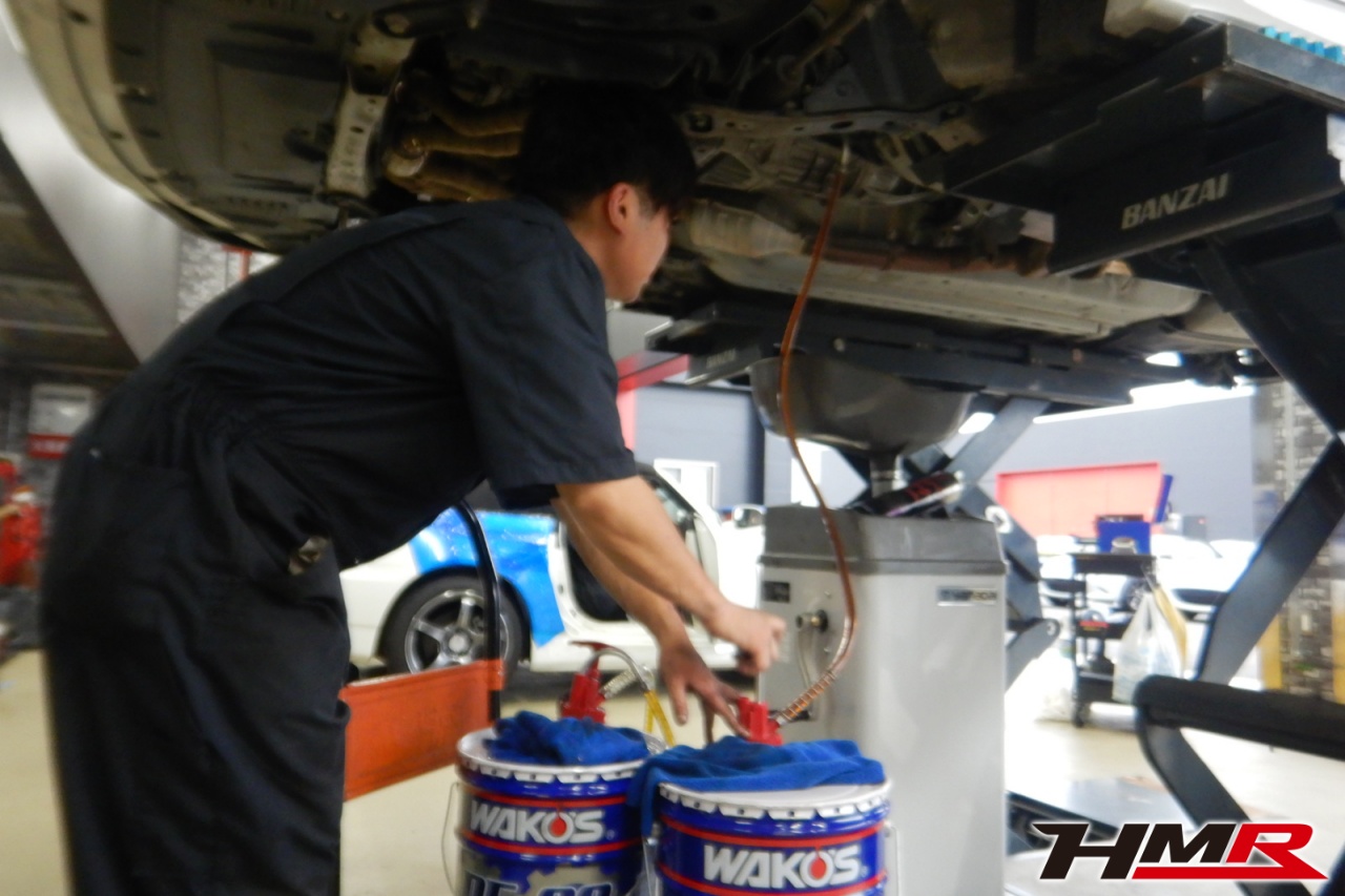 エンジンオイル、オイルフィルター、ミッションオイル、リアデフオイル、クーラント、ブレーキフルード、を交換しました。エンジンオイルはWAKO’SプロステージS 0W-30、ミッションオイルはWAKO’Sギアオイル MT-75 リアデフオイルはWAKO’S ギアオイルMG-90に交換しています。