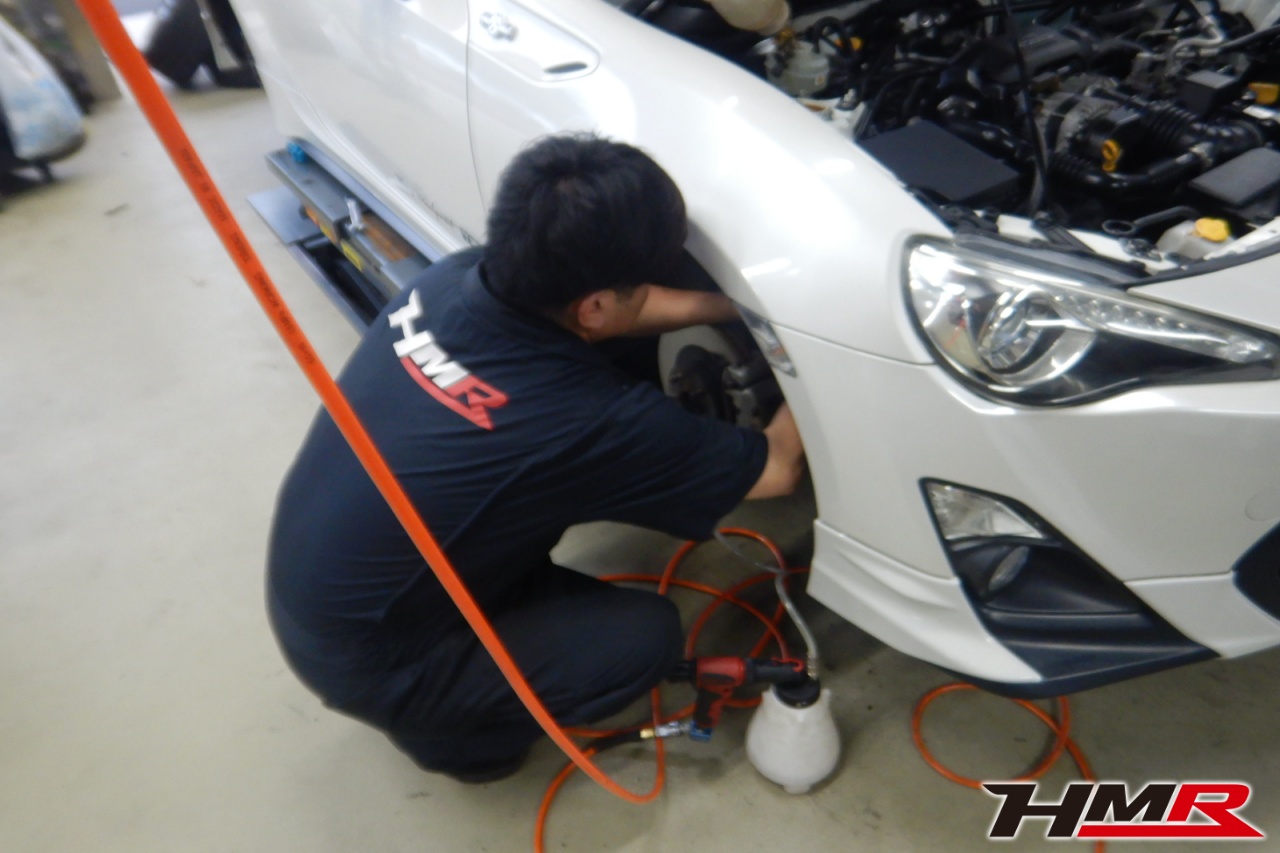 HMR(エイチエムアール)の秋山です。今回は6MT TRDフルエアロ 柿本改マフラー装備のトヨタ86(ZN6)2.0GTの納車前点検整備を行いました。担当メカニックは藤来です。