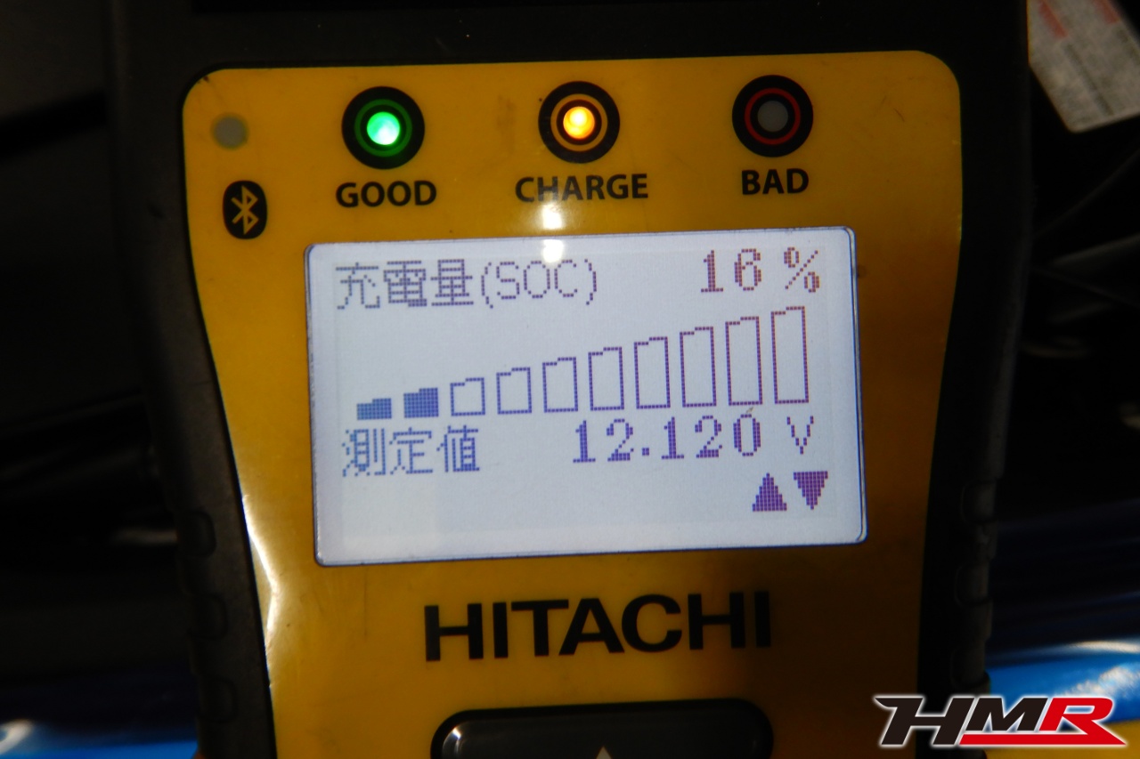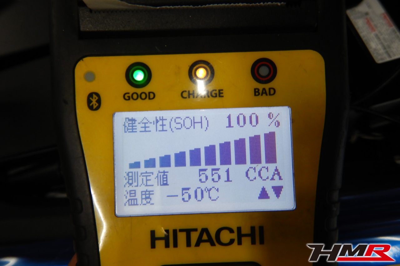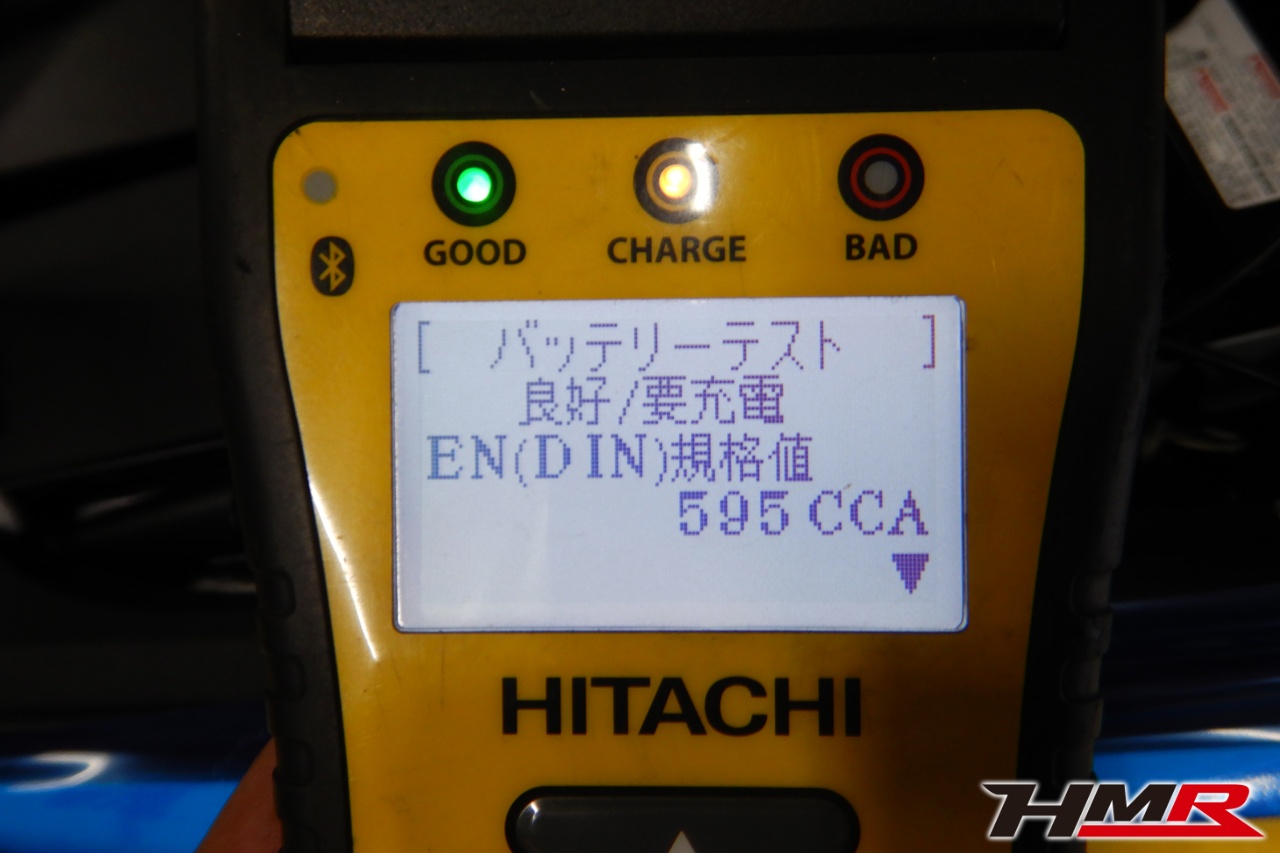 バッテリー、インテークホース、エアクリーナー、補機ベルト、プラグ、ブレーキ・クラッチマスターシリンダー、各部ゴム類の劣化、パッキン類・シール類からのオイル滲み・漏れ、ラジエターの劣化、冷却水漏れ、その他異音などをチェックしました。バッテリーが弱っていましたので充電しました。
