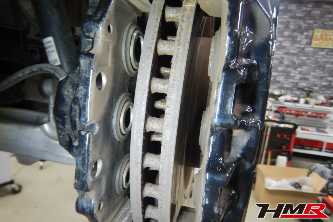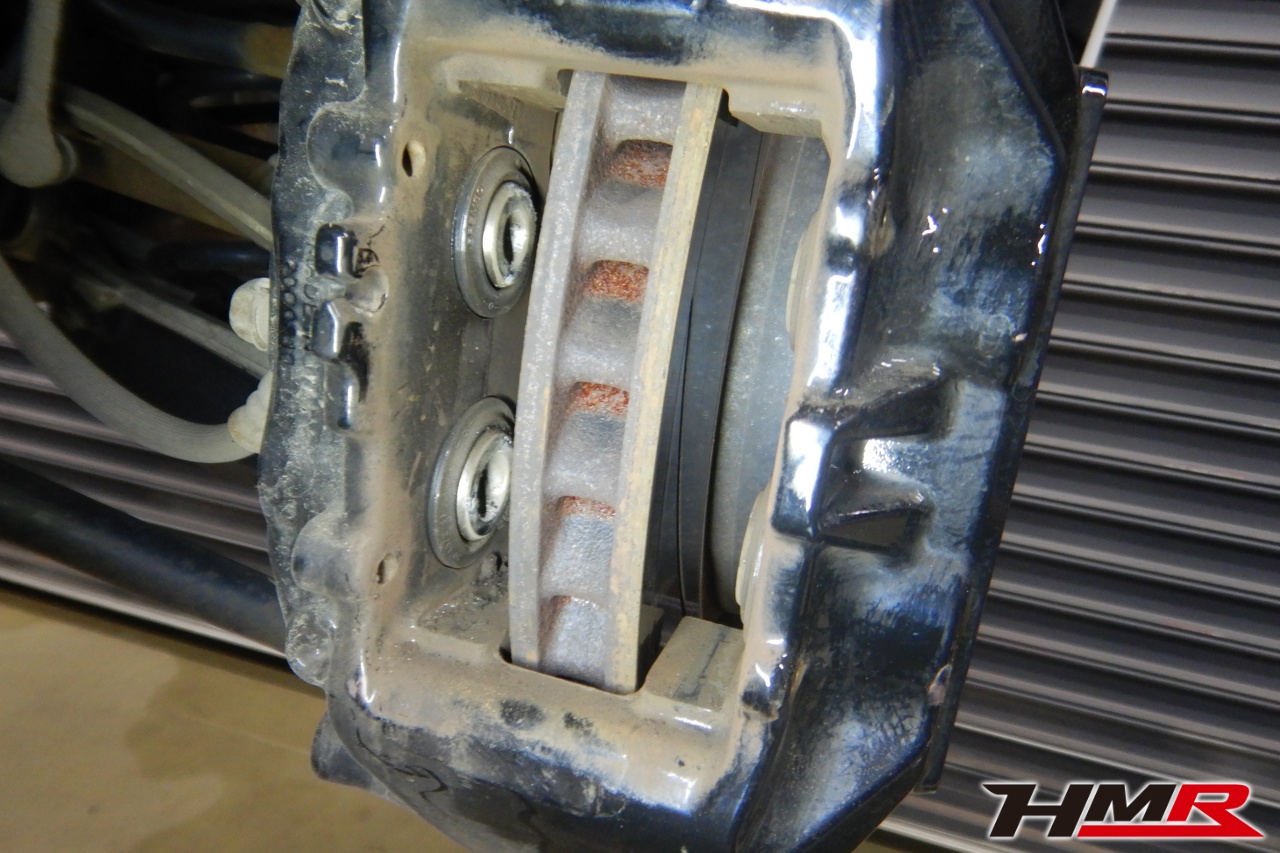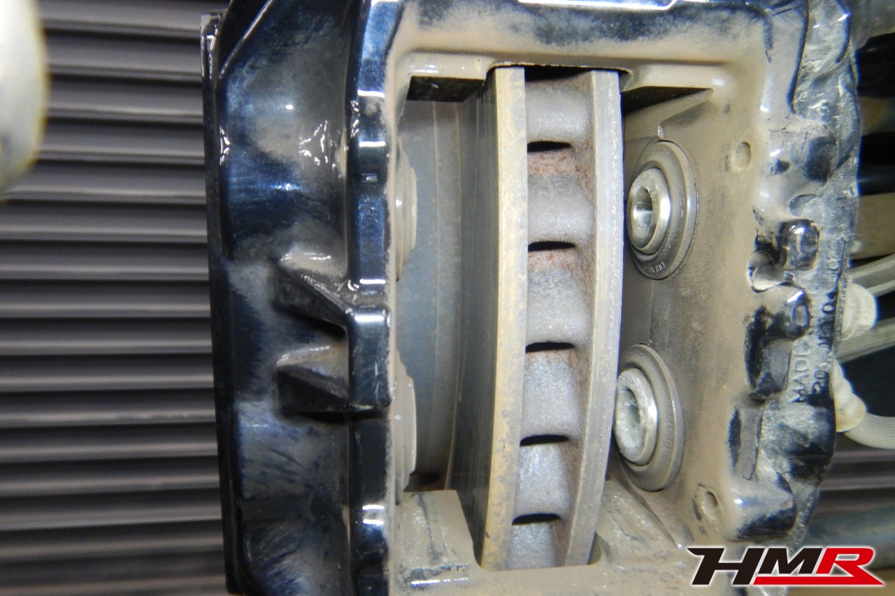 ブレーキキャリパーシール・キャリパーピストン、パッドの残量、ブレーキホースの劣化、ブレーキディスクローターの摩耗をチェックしました。特に問題ありませんでした。パッド残量はフロント8.0mm・リア9.8mmでした。
