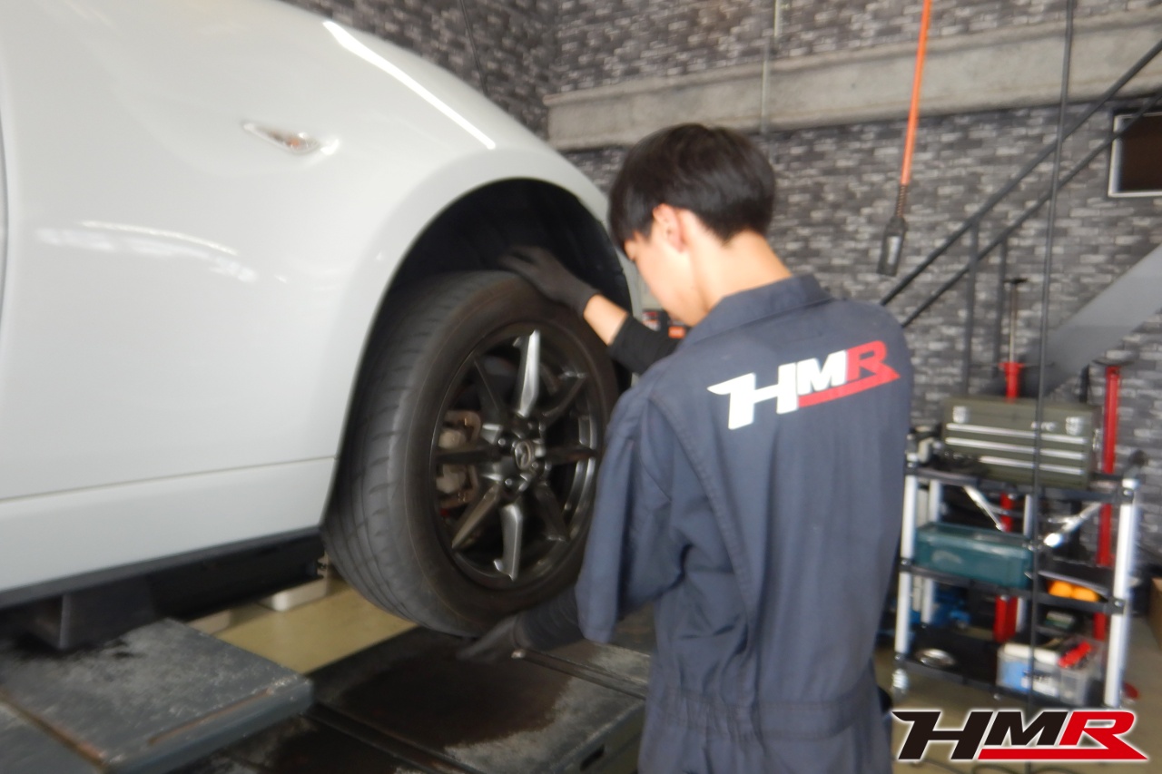 HMR(エイチエムアール)の秋山です。今回はBBS17アルミ レカロシート ETC装備のロードスター(ND5RC)の納車前点検整備を行いました。担当メカニックは手代木です。