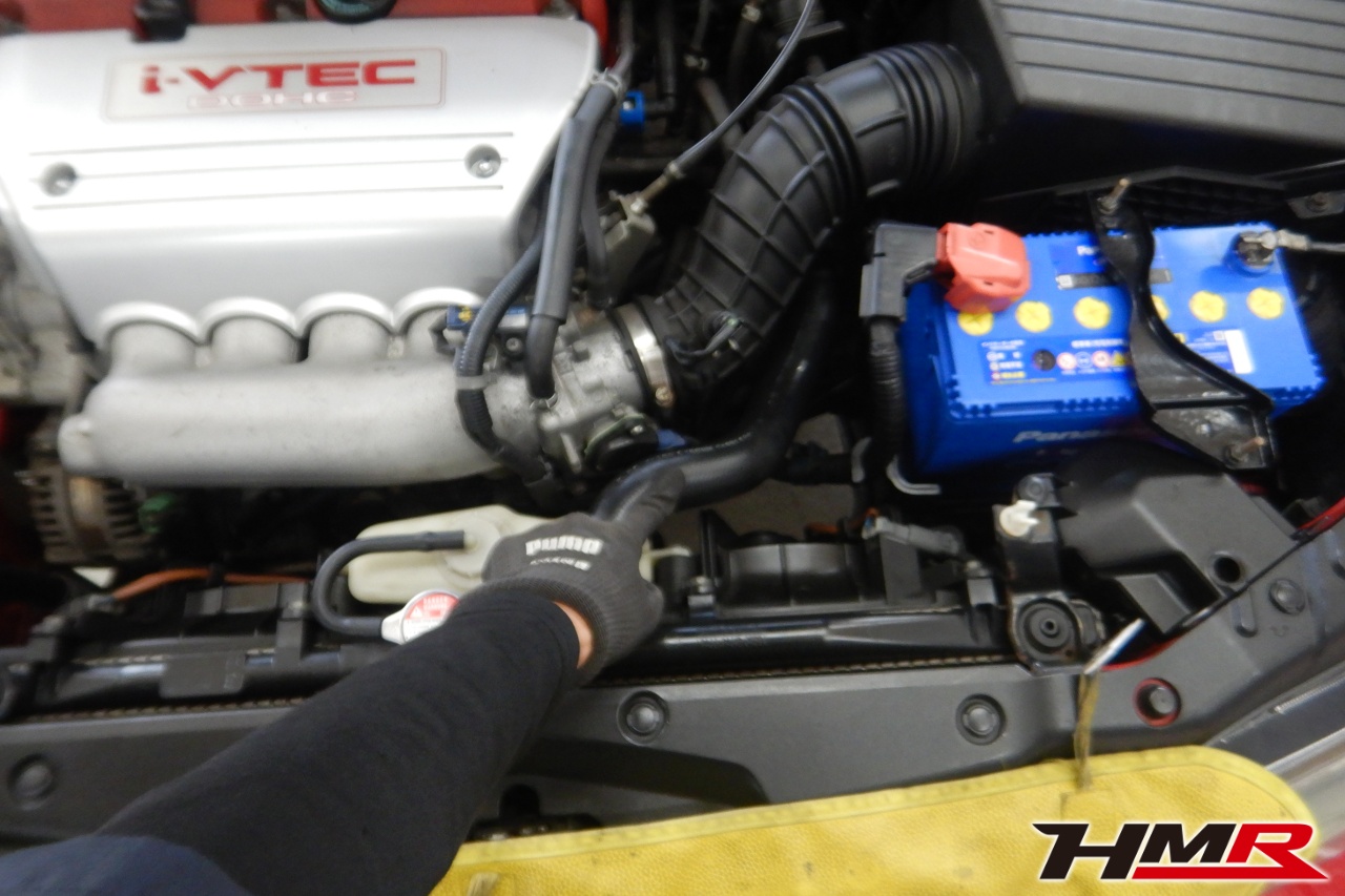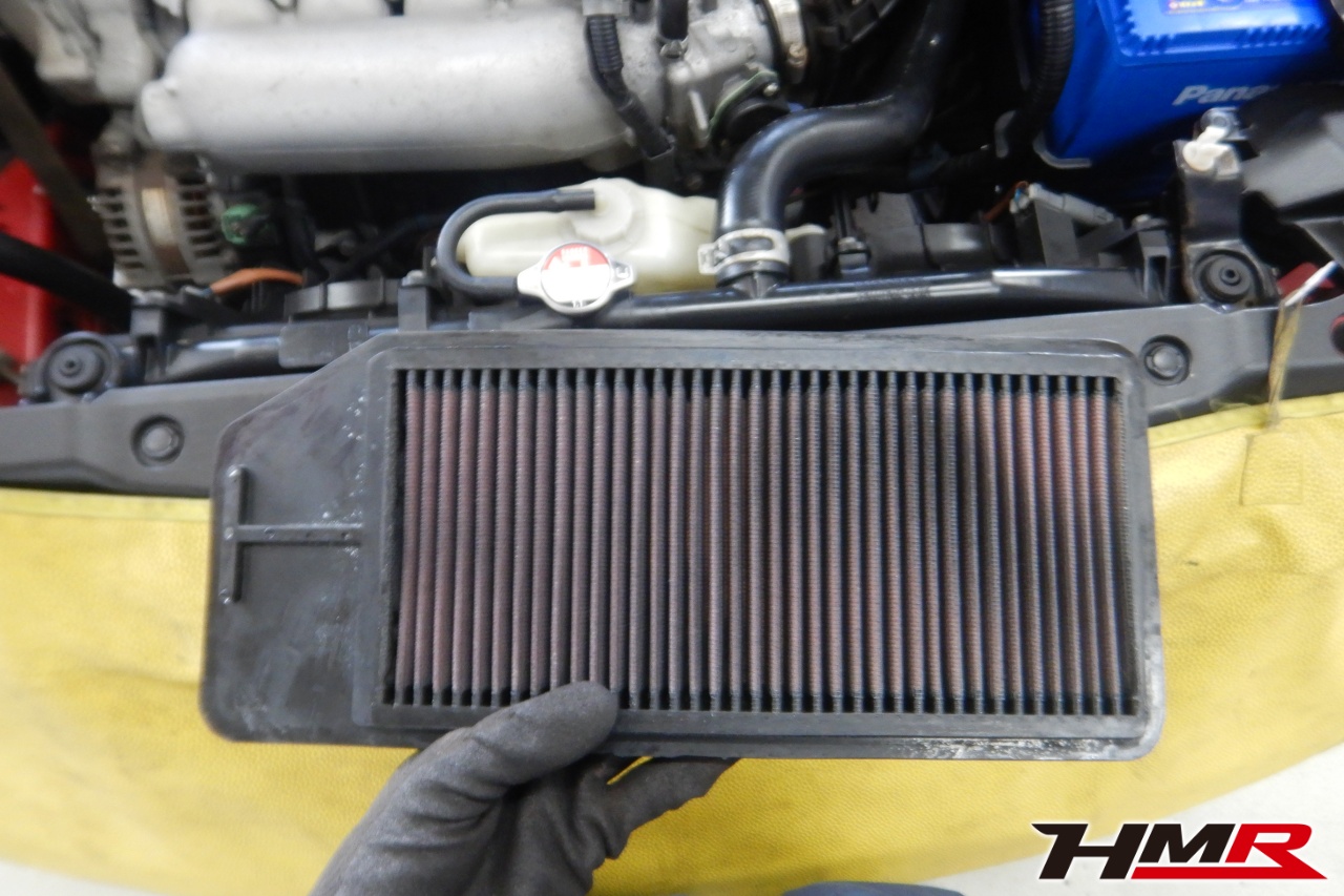 バッテリー、インテークホース、エアクリーナー、補機ベルト、スパークプラグ、ブレーキ&クラッチマスターシリンダー、各部ゴム類の劣化、パッキン類・シール類からのオイル滲み・漏れ、ラジエターの劣化、冷却水漏れ、その他異音などをチェックしました。インテークチューブが切れていましたので交換しました。