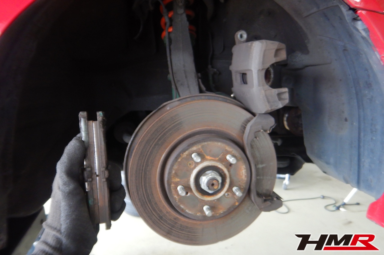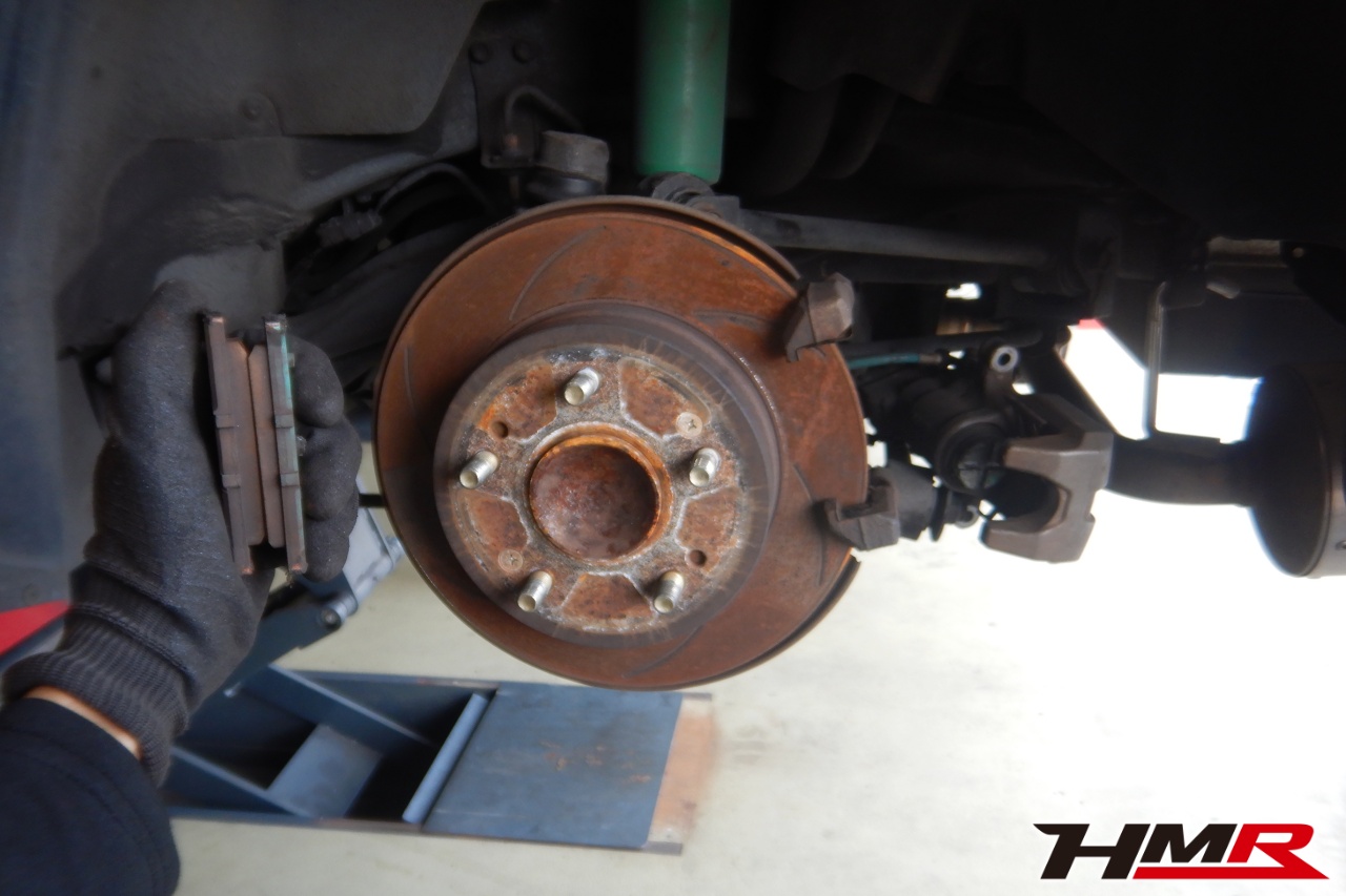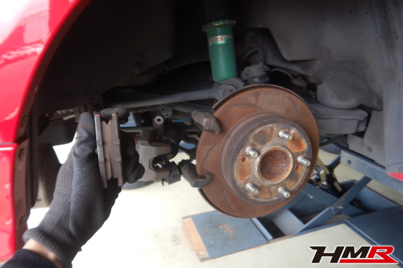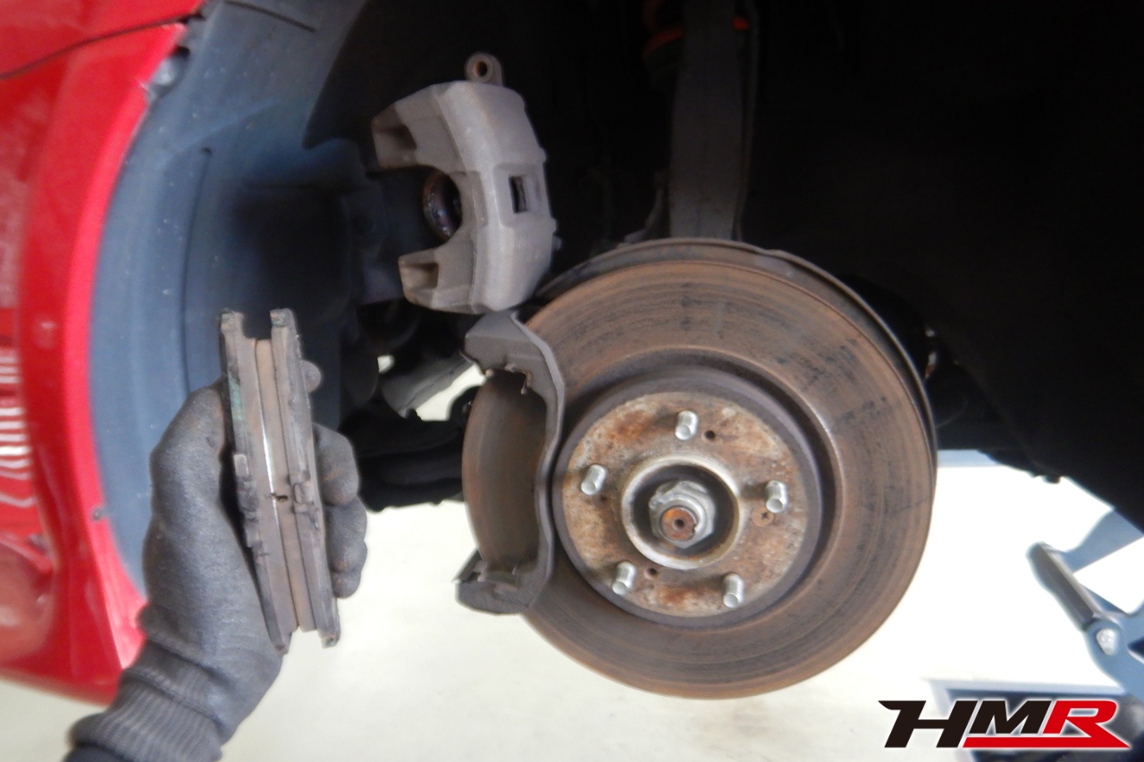 ブレーキキャリパーシール・キャリパーピストン、パッドの残量、ブレーキホースの劣化、ブレーキディスクローターの摩耗をチェックしました。特に問題ありませんでした。パッドの残量はおおよそフロント5.2mm・リア6.4mmでした。