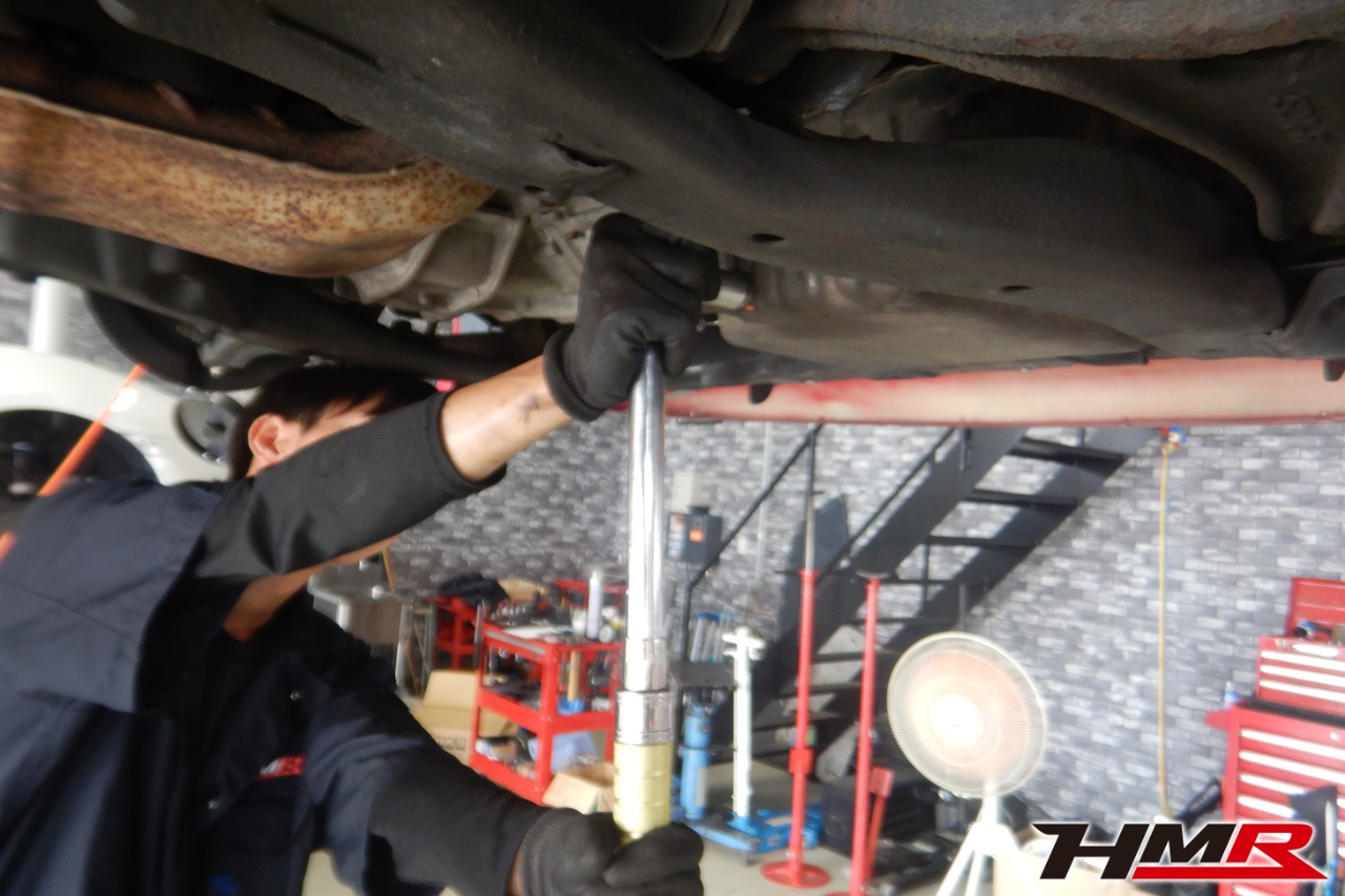ハブベアリング・ボールジョイント、アーム・リンク類のガタ、ブッシュ・ブーツ類の劣化、エンジン・ミッション・デフからのオイル漏れと各マウント類、タイヤ溝の残量、空気圧の点検をしました。左右フロントロアアームブッシュに中サイズのヒビが見られましたが早急に交換する必要は無かったので、今後乗っていく中で交換することをおすすめします。