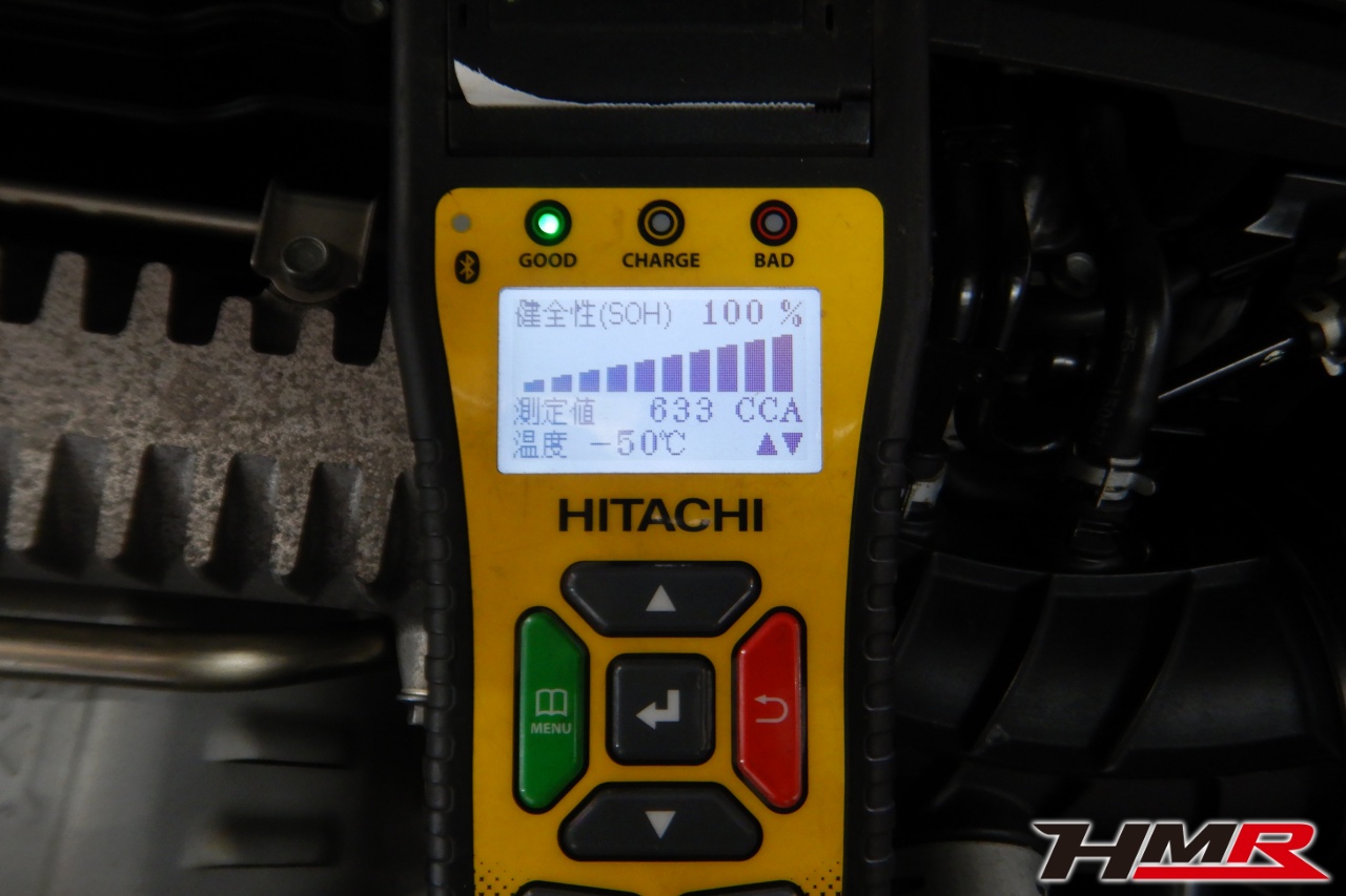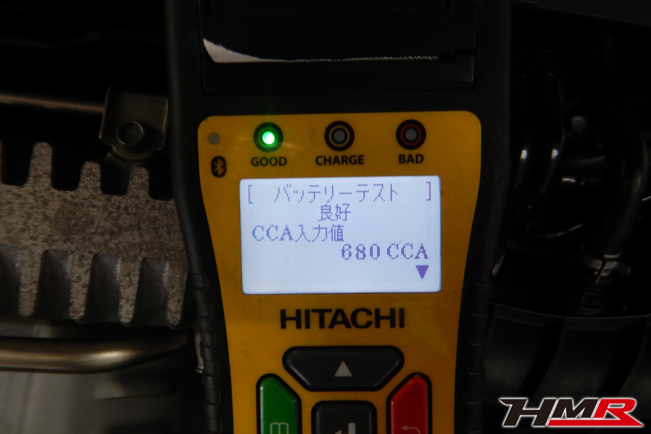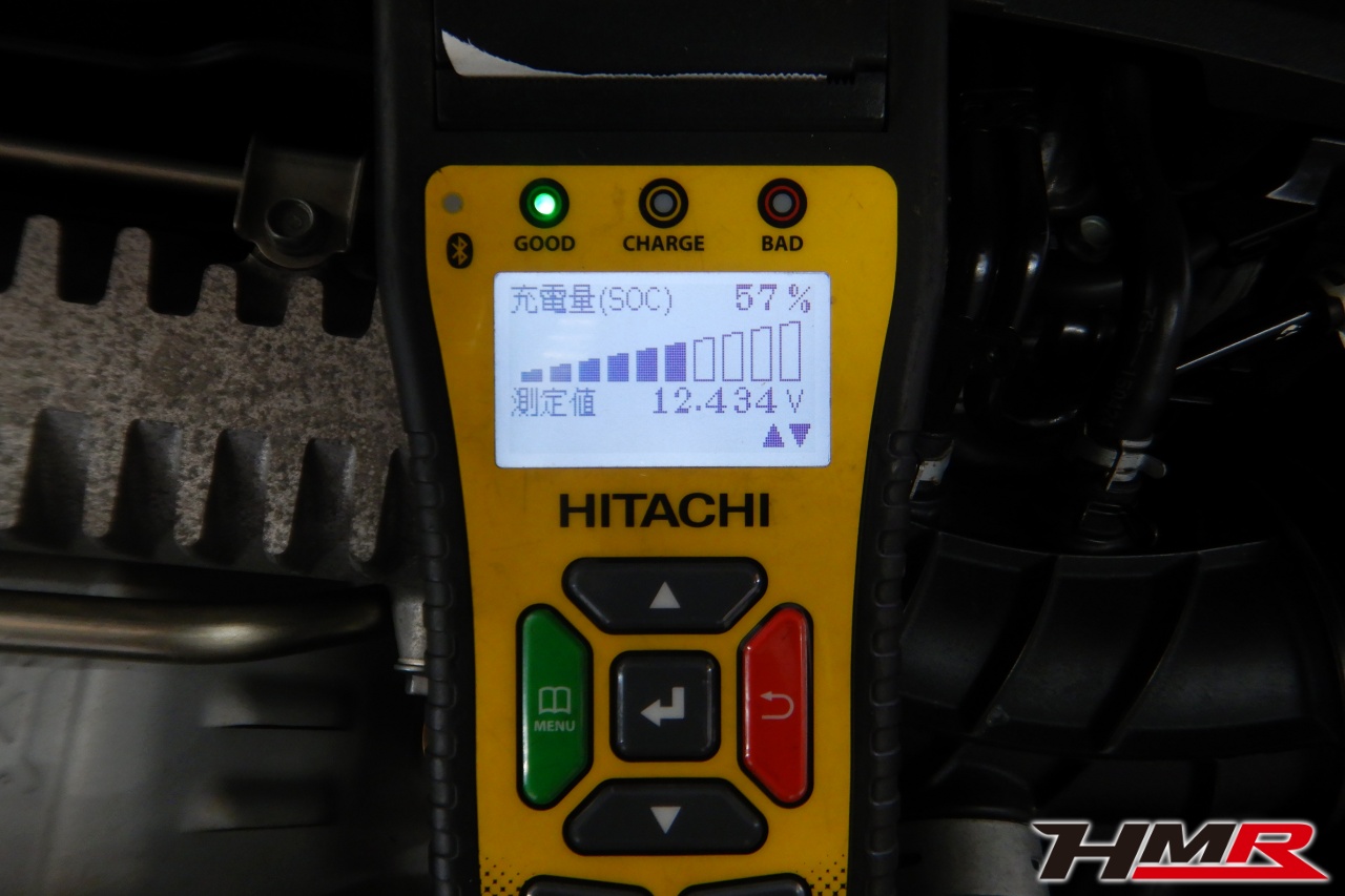 バッテリー、インテークホース、エアクリーナー、補機ベルト、プラグ、ブレーキ・クラッチマスターシリンダー、各部ゴム類の劣化、パッキン類・シール類からのオイル滲み・漏れ、ラジエターの劣化、冷却水漏れ、その他異音などをチェックしました。バッテリーが弱っていましたので充電しました。