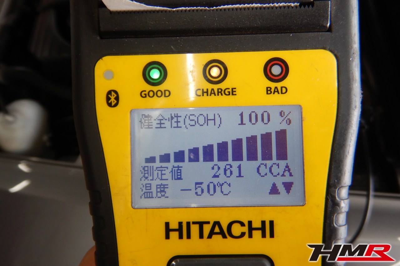 バッテリー、インテークホース、エアクリーナー、補機ベルト、プラグ、ブレーキ・クラッチマスターシリンダー、各部ゴム類の劣化、パッキン類・シール類からのオイル滲み・漏れ、ラジエターの劣化、冷却水漏れ、その他異音などをチェックしました。バッテリーが弱っていましたので交換しました。またプラグが摩耗していましたのでこちらも交換しました。