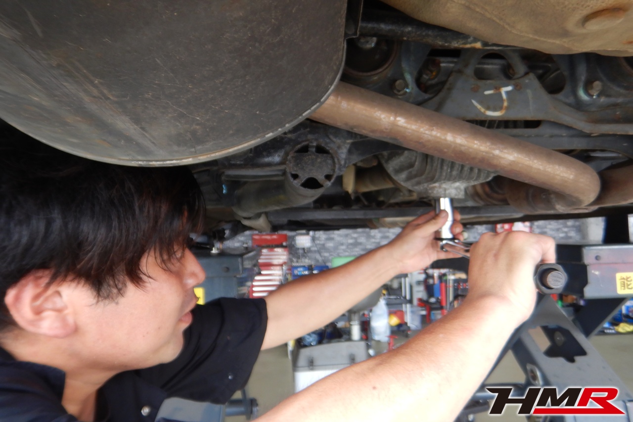 ハブベアリング・ボールジョイント、アーム・リンク類のガタ、ブッシュ・ブーツ類の劣化、エンジン・ミッション・デフからのオイル漏れと各マウント類、タイヤ溝の残量、空気圧の点検しました。右側フロントタイロッドエンドブーツ、左右フロントロアアームにヒビが見られましたので交換しました。