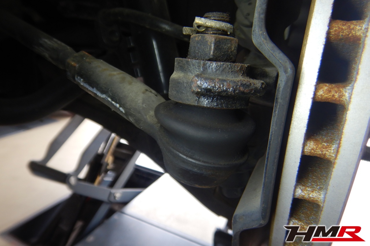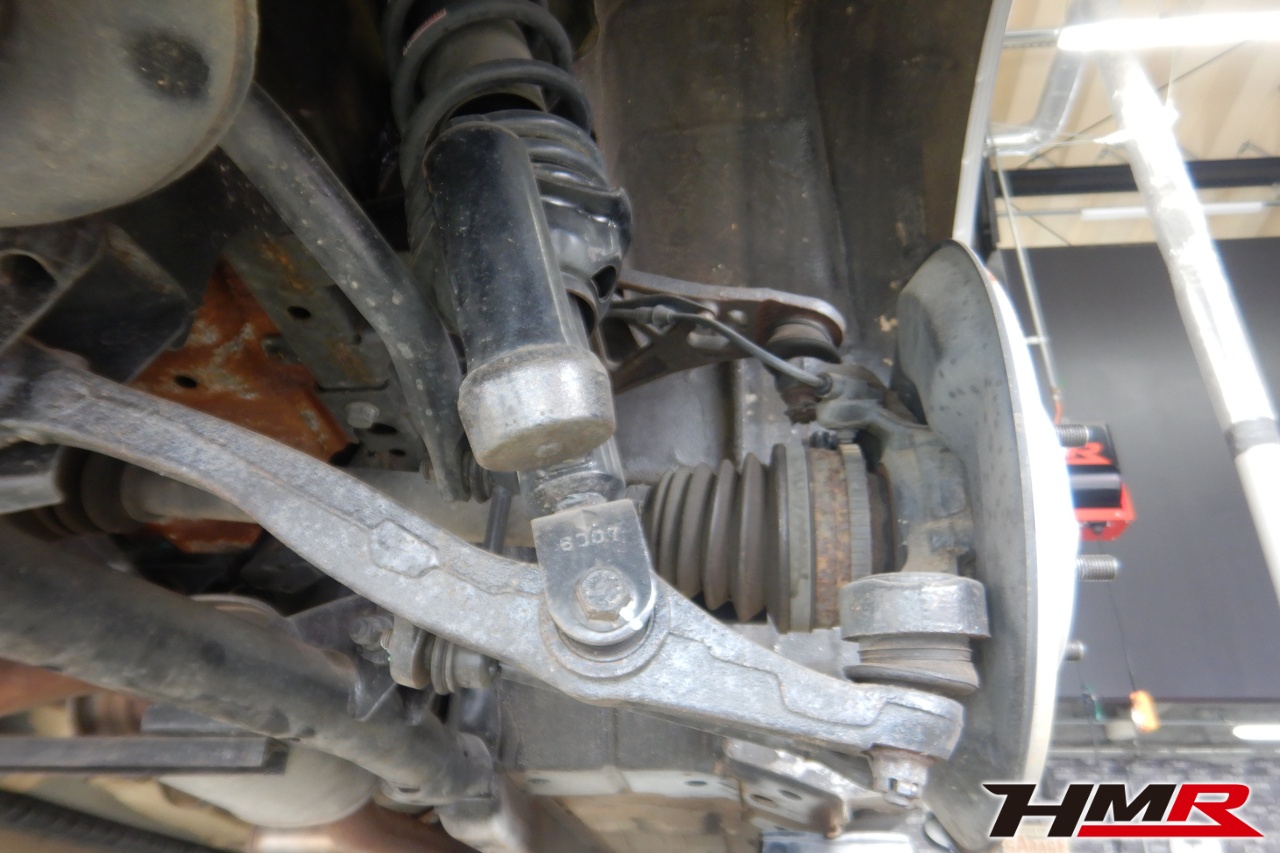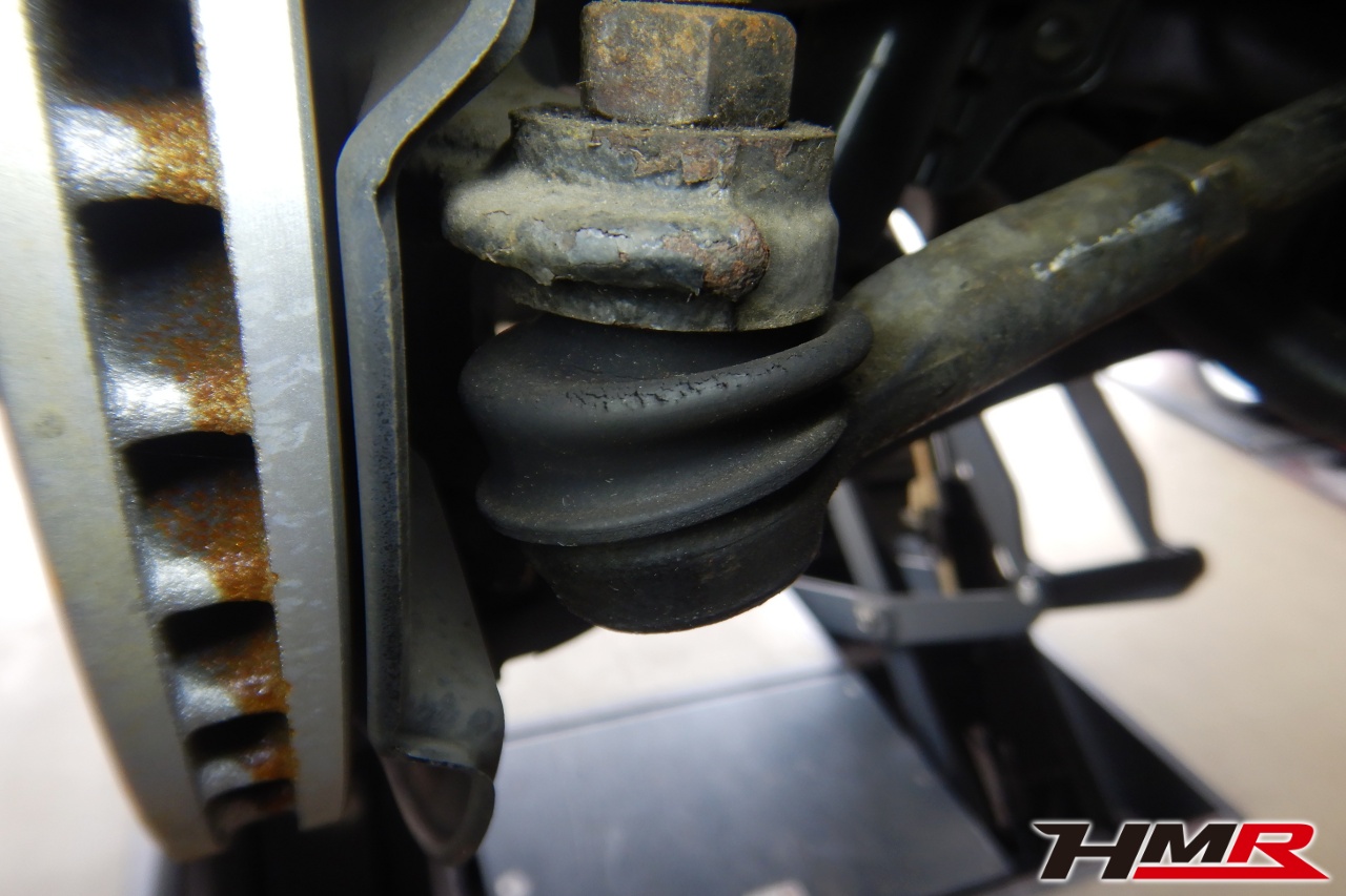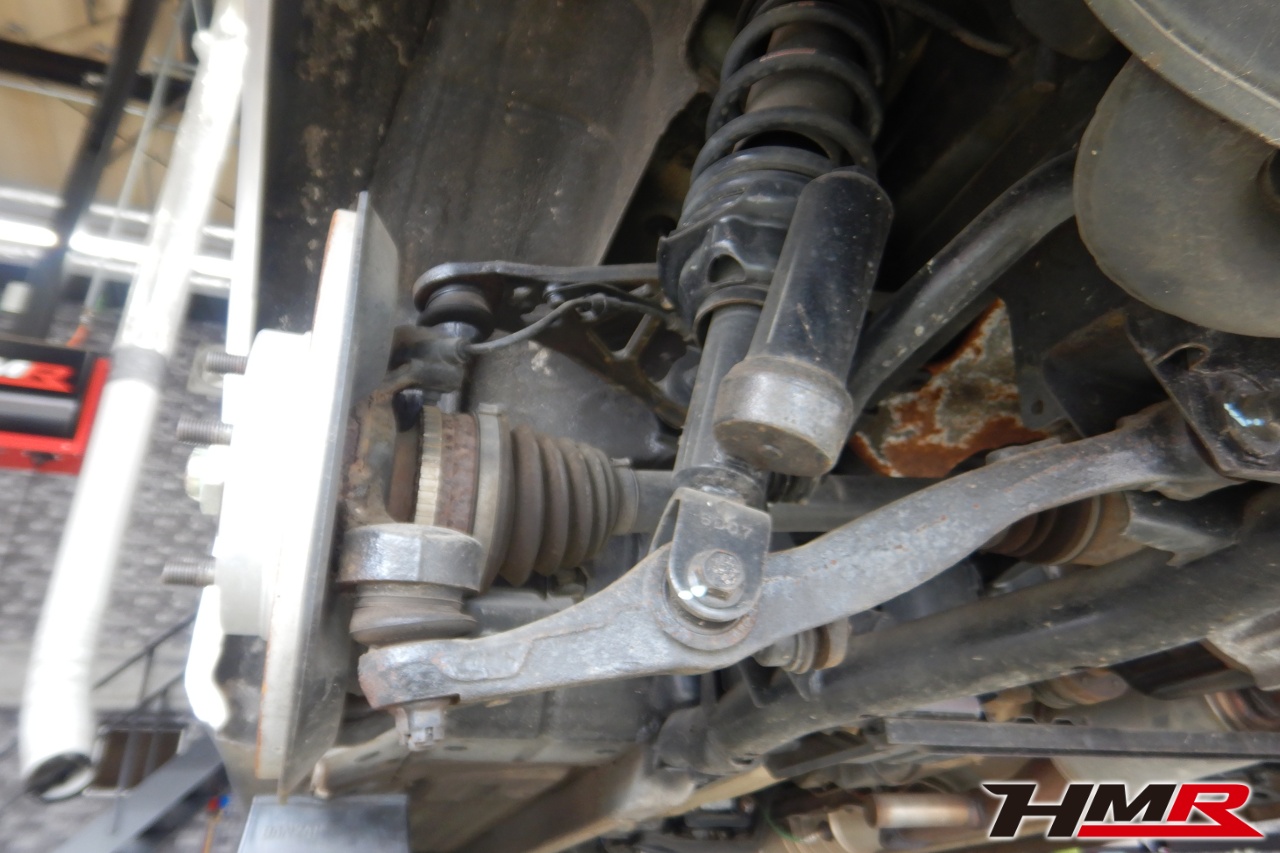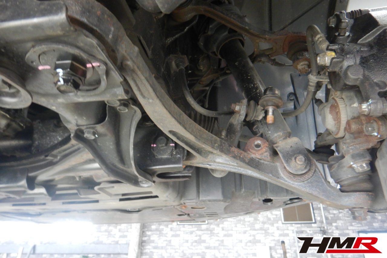 ハブベアリング・ボールジョイント、アーム・リンク類のガタ、ブッシュ・ブーツ類の劣化、エンジン・ミッション・デフからのオイル漏れと各マウント類、タイヤ溝の残量、空気圧の点検しました。右側フロントタイロッドエンドブーツ、左右フロントロアアームにヒビが見られましたので交換しました。