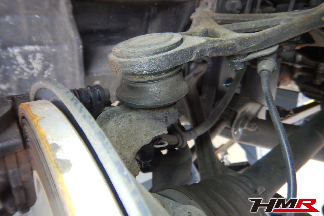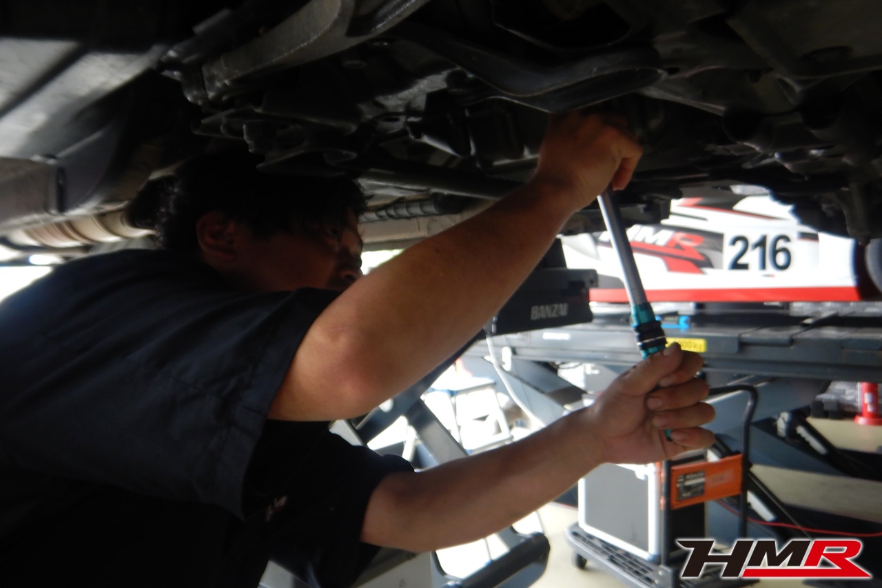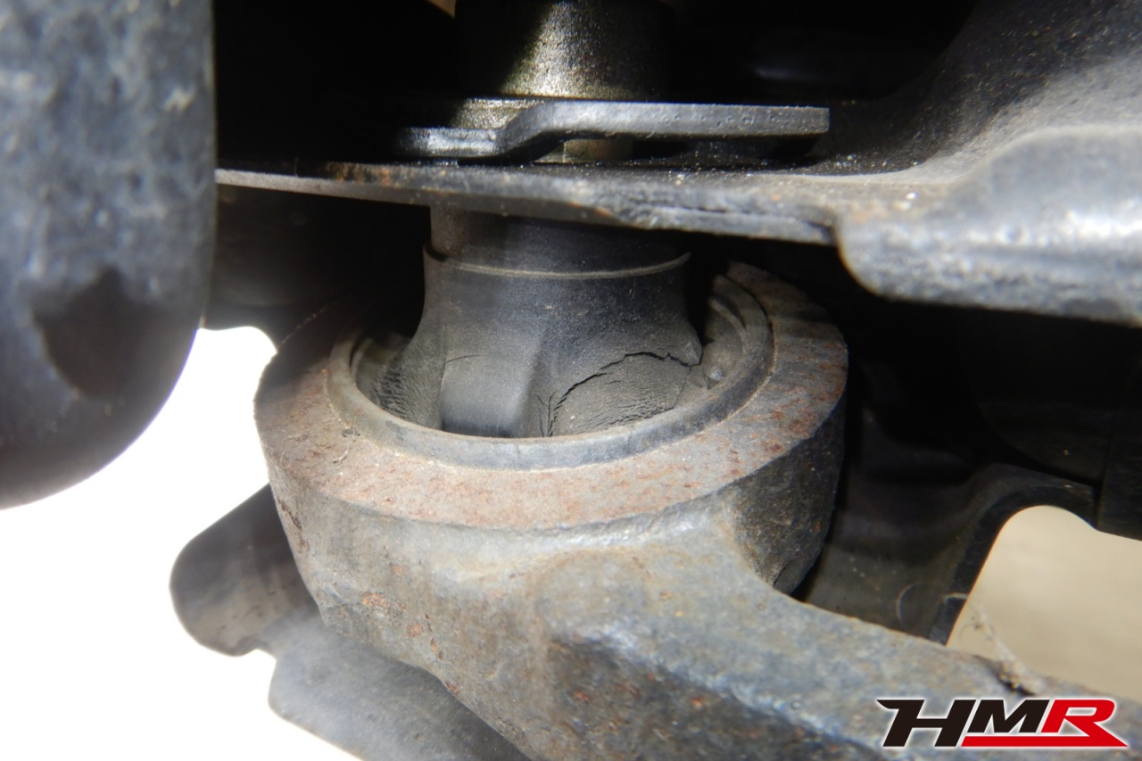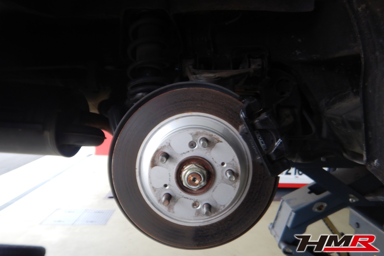 ハブベアリング・ボールジョイント、アーム・リンク類のガタ、ブッシュ・ブーツ類の劣化、エンジン・ミッション・デフからのオイル漏れと各マウント類、タイヤ溝の残量、空気圧の点検しました。右側フロントタイロッドエンドブーツ、左右フロントロアアームにヒビが見られましたので交換しました。